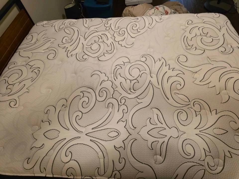 Mattress always used with a thick waterproof mattress protector. Mattress is about 5 years old, still lots of life left in it. See photo.