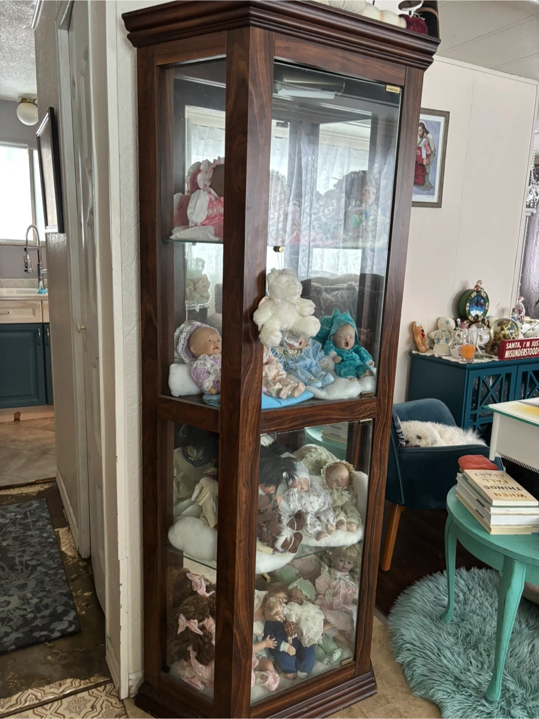 Selling a display cabinet with a lovely wood finish! It’s in great shape and perfect for showing off your favourite collectibles, dolls, or other treasures. A great addition to any room!