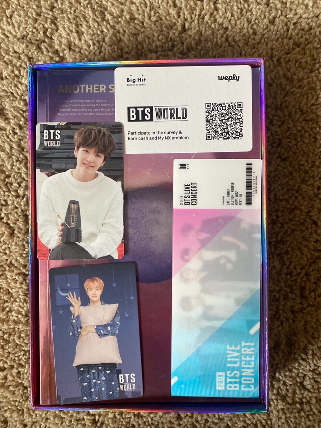Selling a BTS World Original Soundtrack album! It comes with various inclusions, such as photo cards and a poster. The album comes with the pink bag and is in great condition and ready for a new owner!