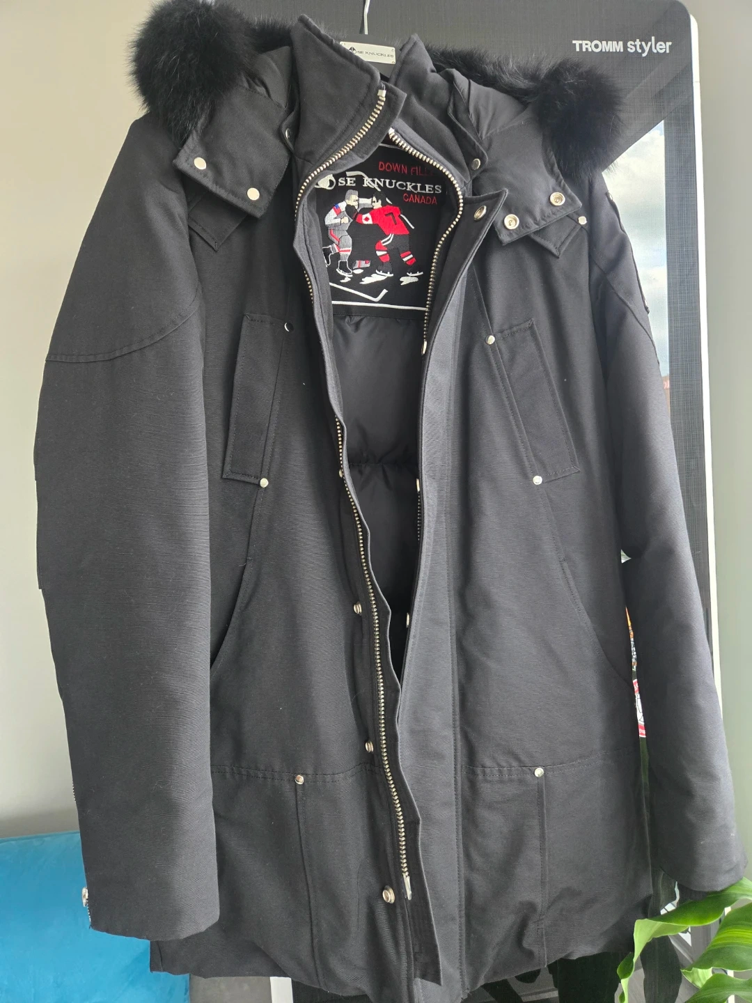 Selling a Moose Knuckles down-filled parka in black! It's in great condition and ready to keep you warm this winter. With matte black patch. There is a slight mark on the logo patch. But it's not noticeable. Purchased at a department store in South Korea.