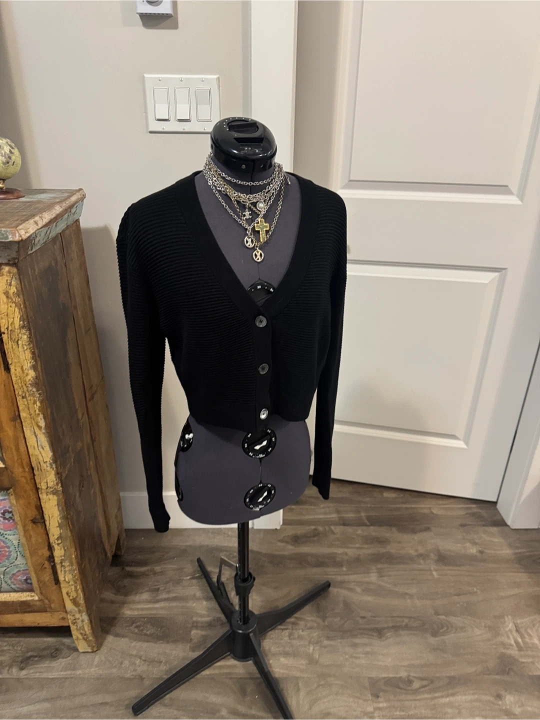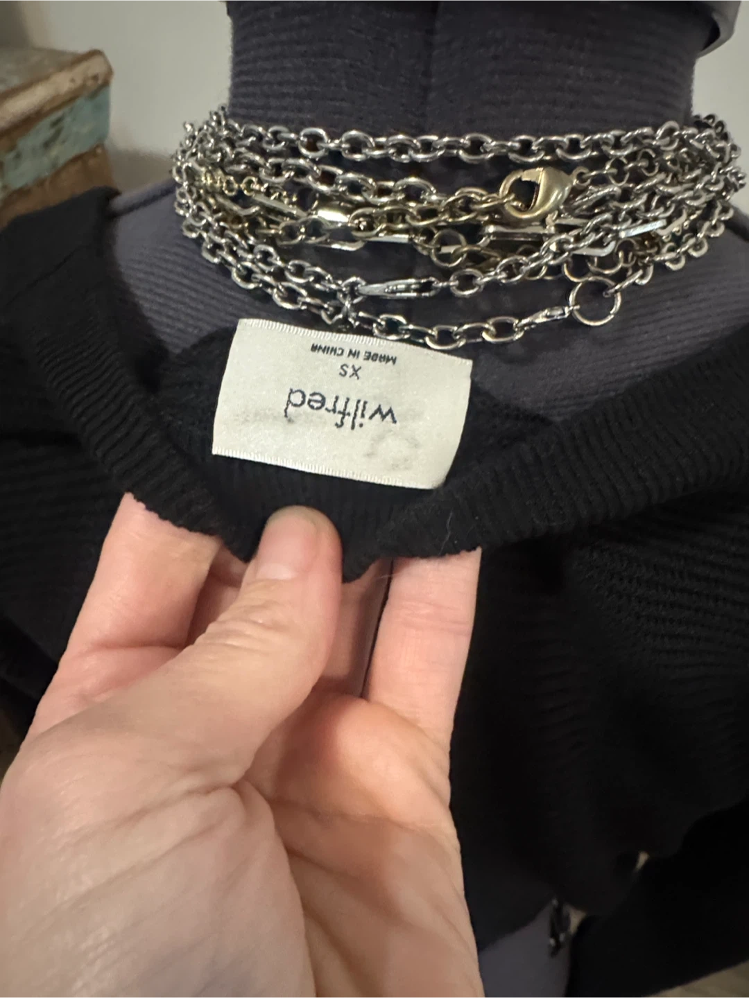 Chic black cardigan by Wilfred. Features a button-up front. Perfect for layering. Fits true xs. Good used condition just too small. Bundle & save
