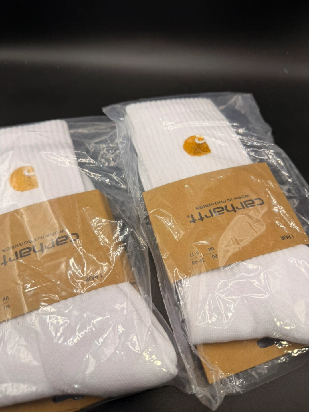 Here are some brand new Carhartt Grant Socks! They are white and fit EU sizes 39-46 (UK 6-11). The socks are made of 80% cotton, 18% polyester, and 2% elastane