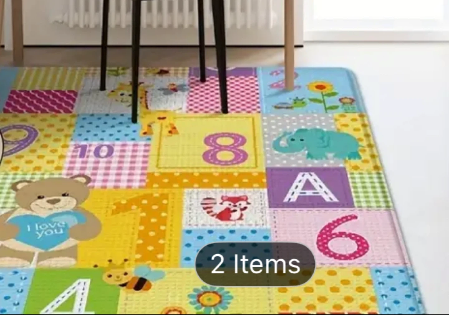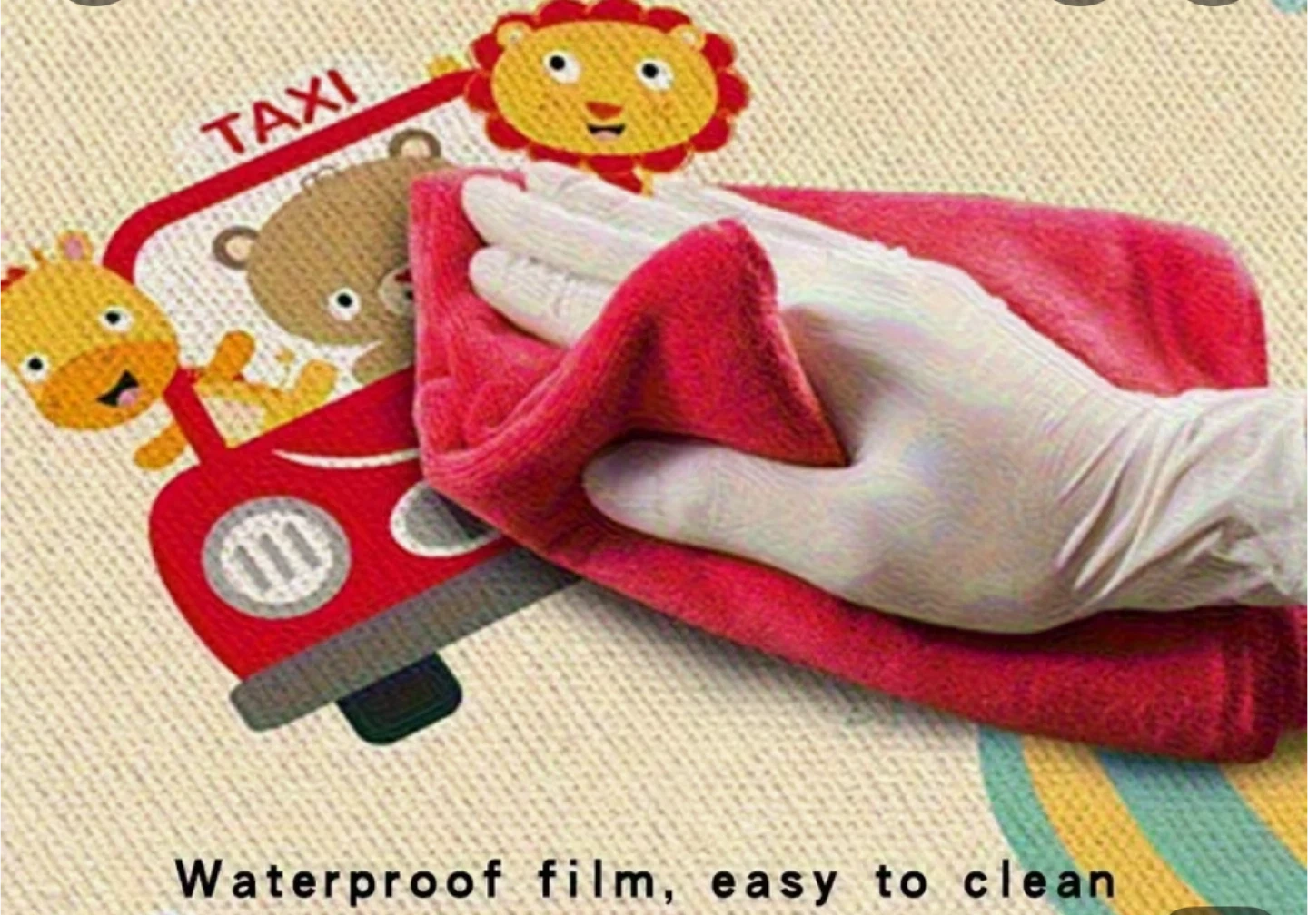 This colourful play mat is perfect for kids! It features numbers and animals, making it both fun and educational. It's easy to clean with its waterproof film, and it folds up for easy storage. Dimensions are 176 cm x 96 cm.