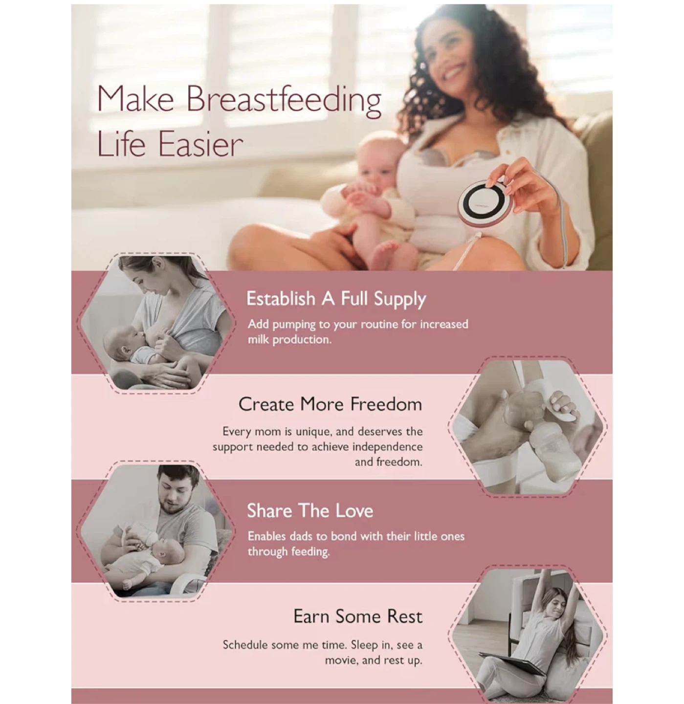 The working sound of <48dB ensures discreet pumping in public settings without drawing attention, while also providing a disturbance-free experience for the baby during home sessions