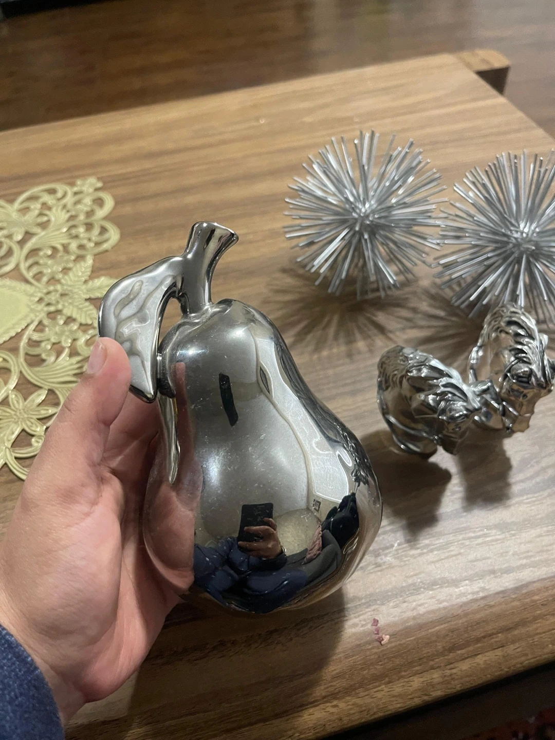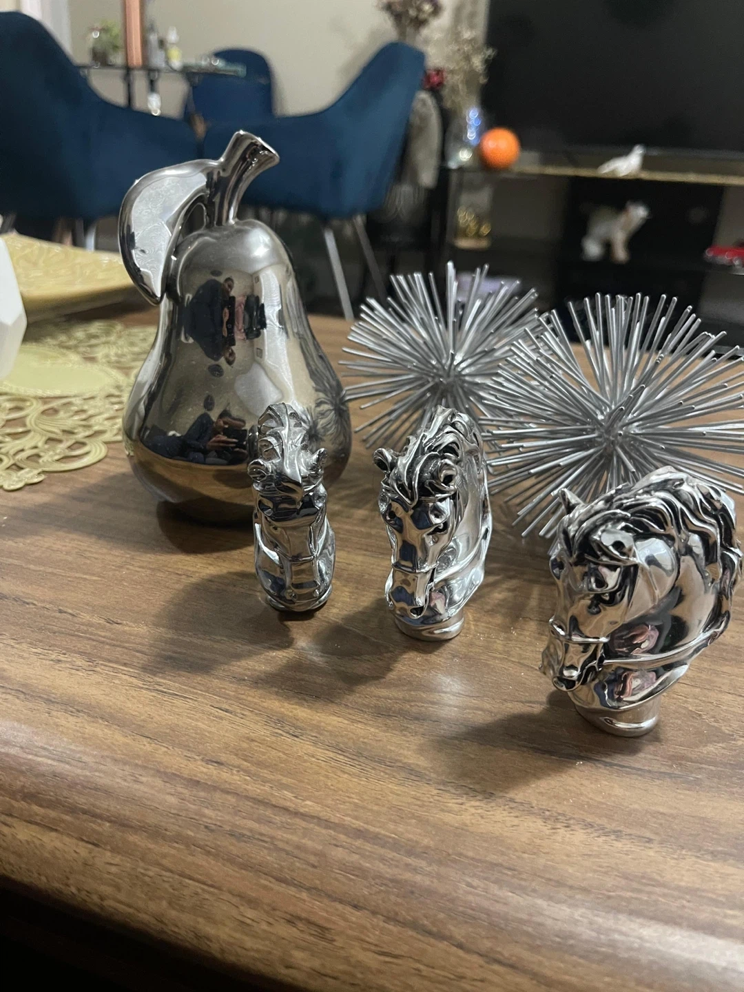 Silver Home Decor Items: Pear, Spike Ball, Horse Heads