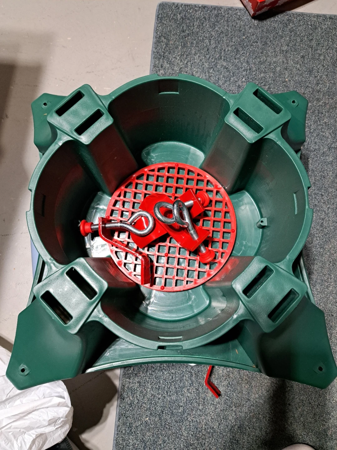 Selling a Christmas Mountains Christmas tree stand! It has never been used and ready to hold your tree securely this holiday season. The stand features a reservoir to keep your tree hydrated and comes with all the necessary hardware. The 4th bracket is there but not in photo.