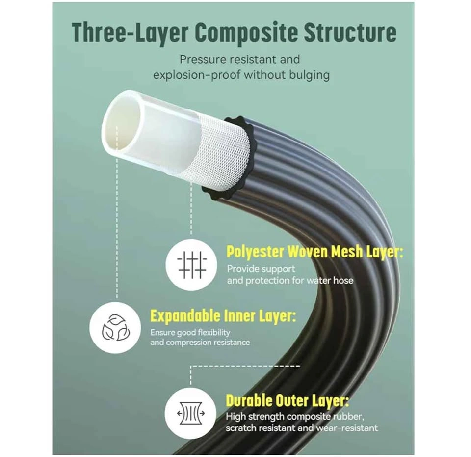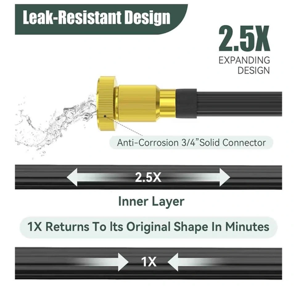 Expandable Garden Hose Kit - Nozzle & Hanger Included