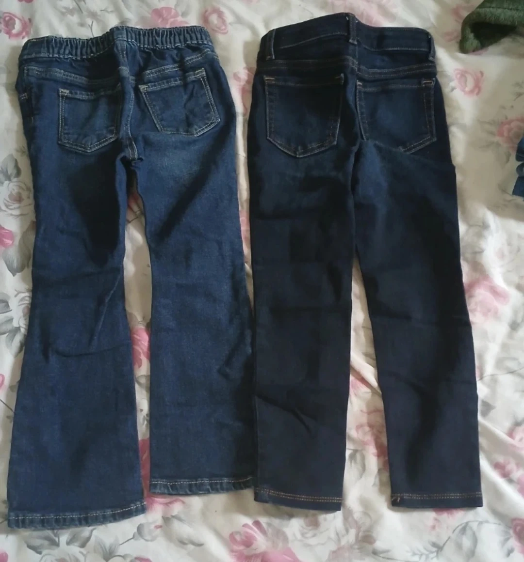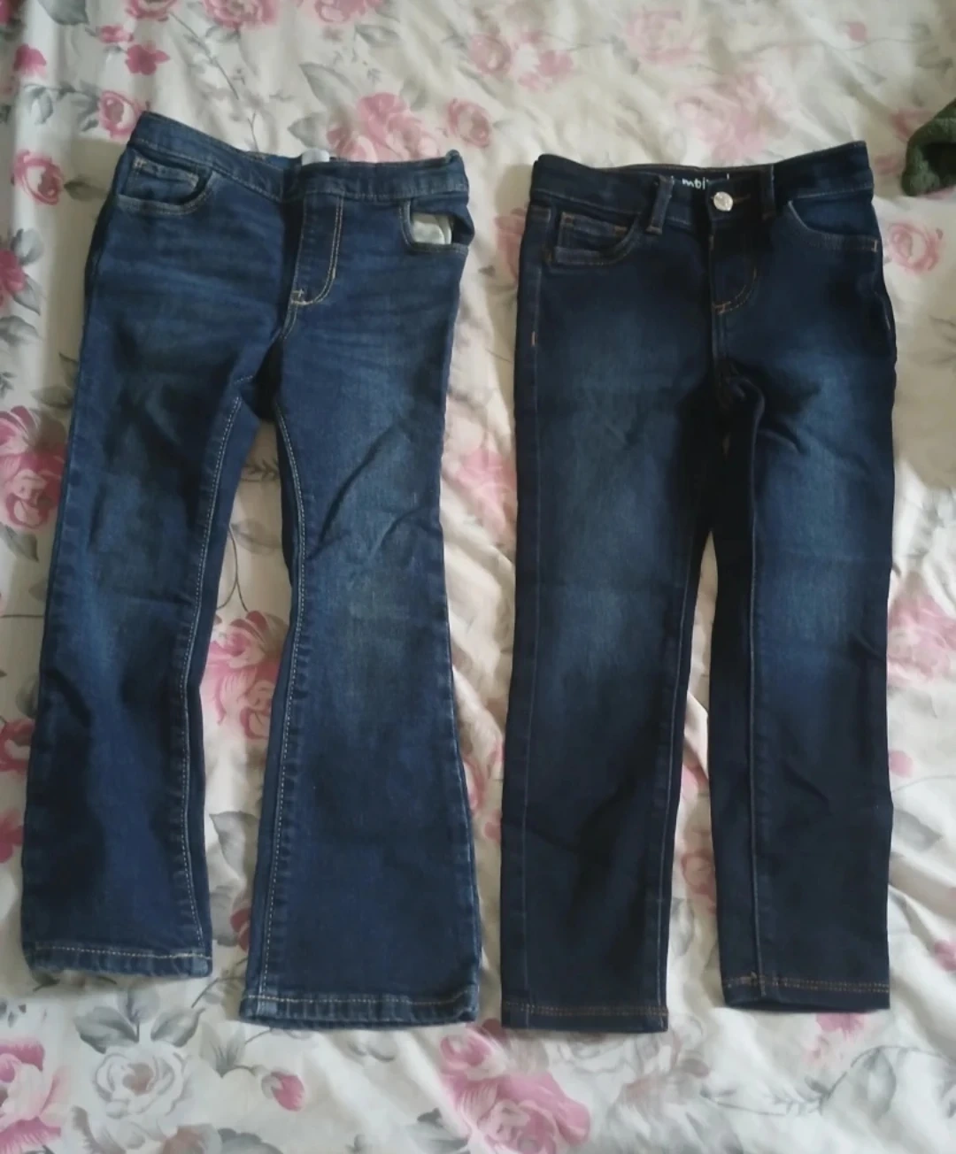 Two pairs of jeans in size 5T! One pair is a bootcut style and the other is a more traditional straight leg fit.