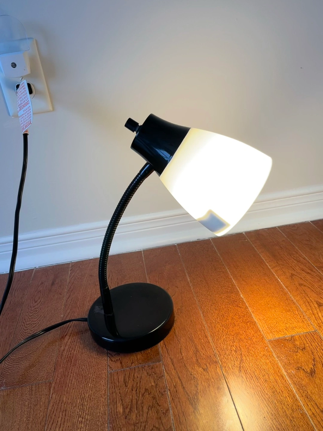 Selling a black gooseneck desk lamp! It's in great condition and perfect for a desk or bedside table. The gooseneck design makes it easy to adjust the light to just the right angle