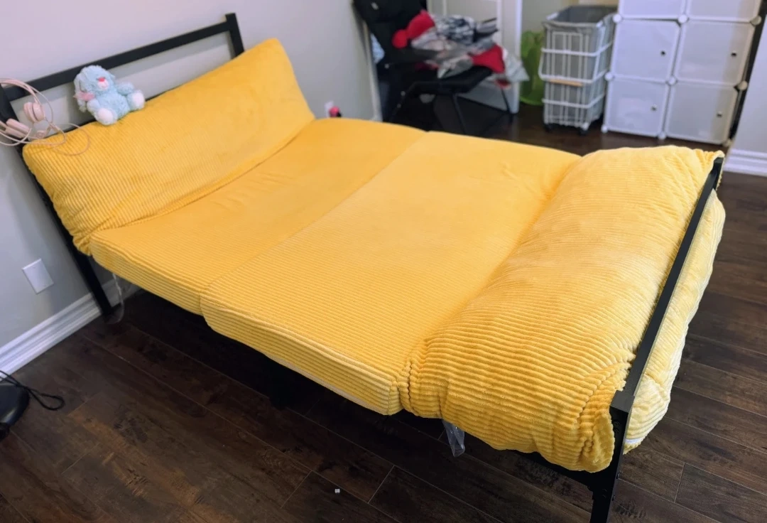 Selling a yellow N&V Folding Mattress Sofa! Originally bought for $249.99 plus tax. It's in great shape and ready for a new space It can be double folder to use it as a Sofa. Original price is $282 Perfectly clean and neat. Not even a single stain or dust anywhere. Pick up at 33 elm drive west mississauga