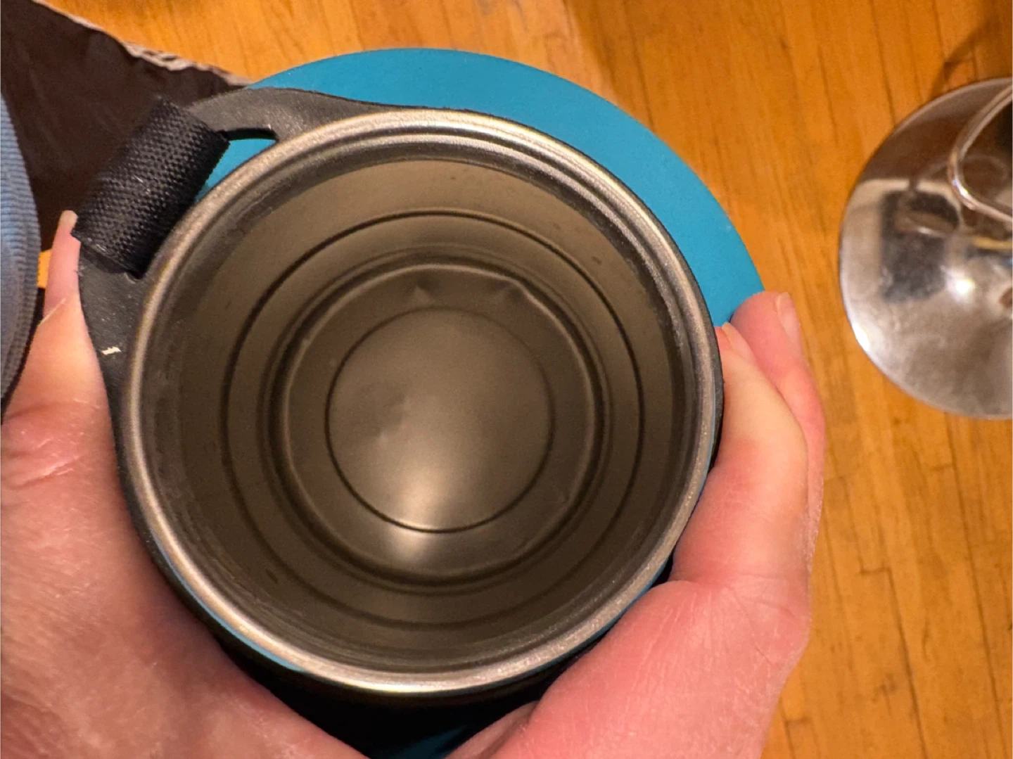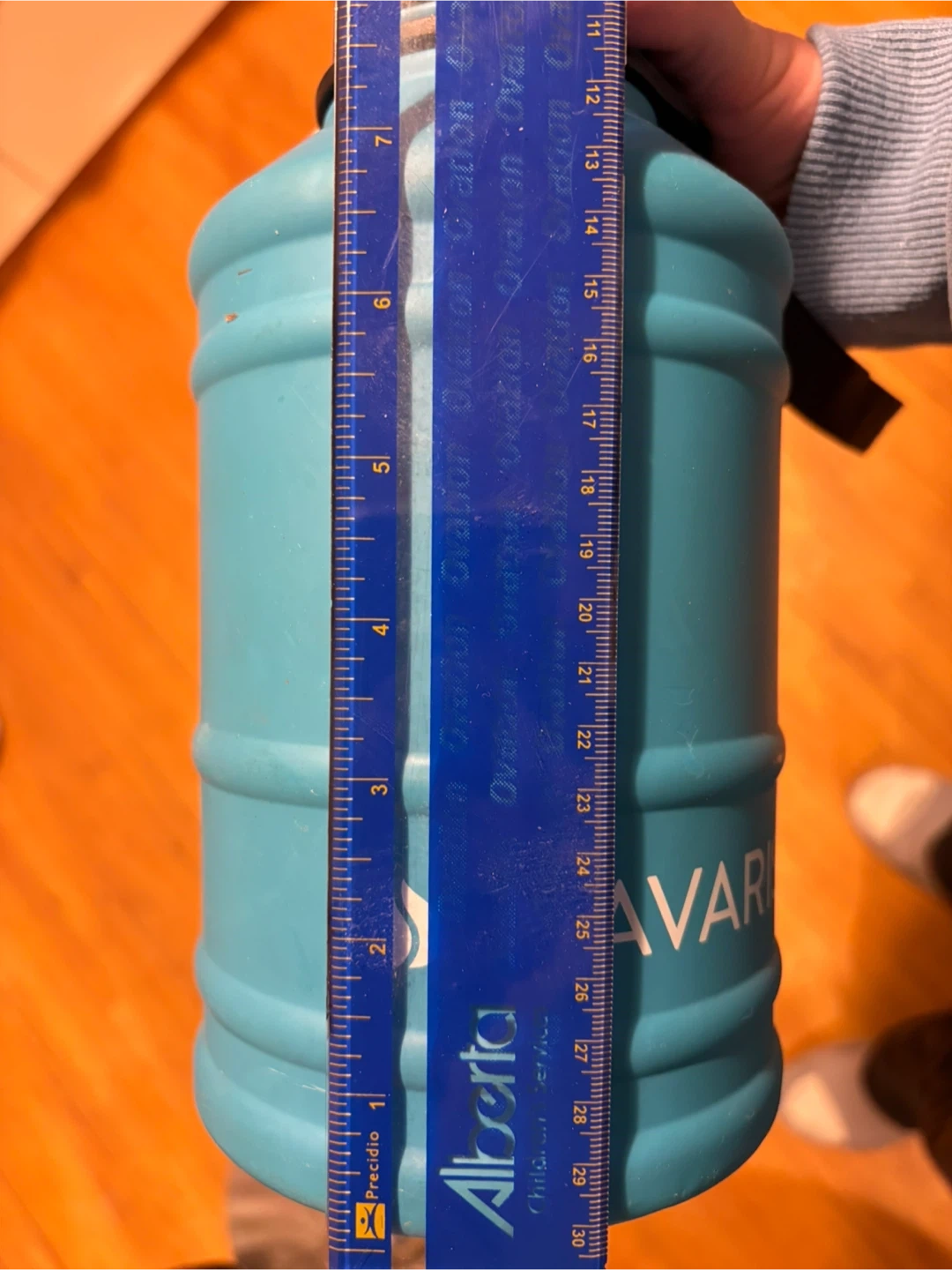 Selling a Navaris water bottle in blue. It shows some signs of use, like scratches on the bottom and lid. Still works great for staying hydrated on the go!pick up at Morley trail NW