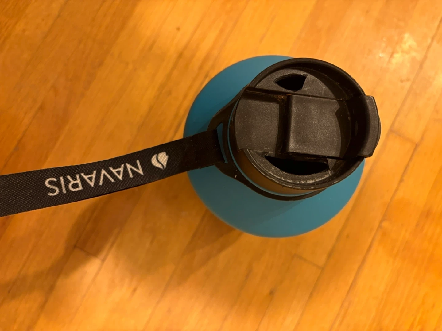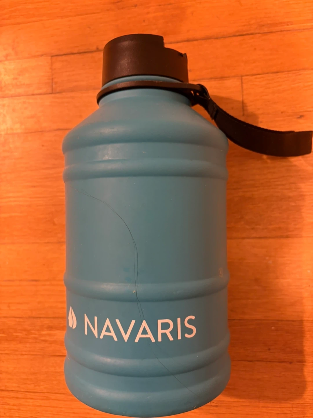 Selling a Navaris water bottle in blue. It shows some signs of use, like scratches on the bottom and lid. Still works great for staying hydrated on the go!pick up at Morley trail NW