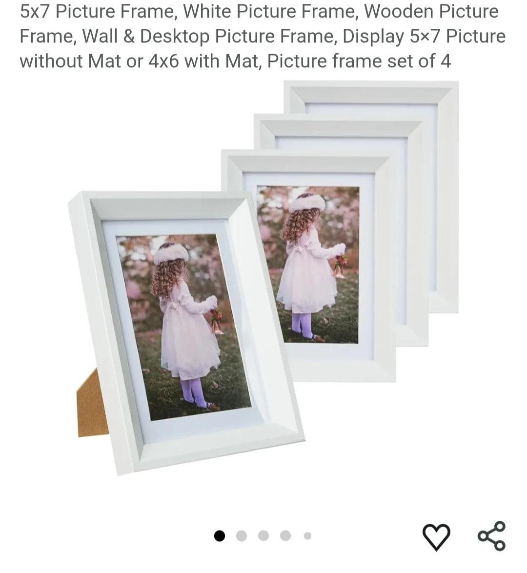Selling a set of four PICTUOTO picture frames! They're white and fit 4x6 inch photos. Great for displaying photos on a wall or desktop. They can be hung horizontally or vertically!