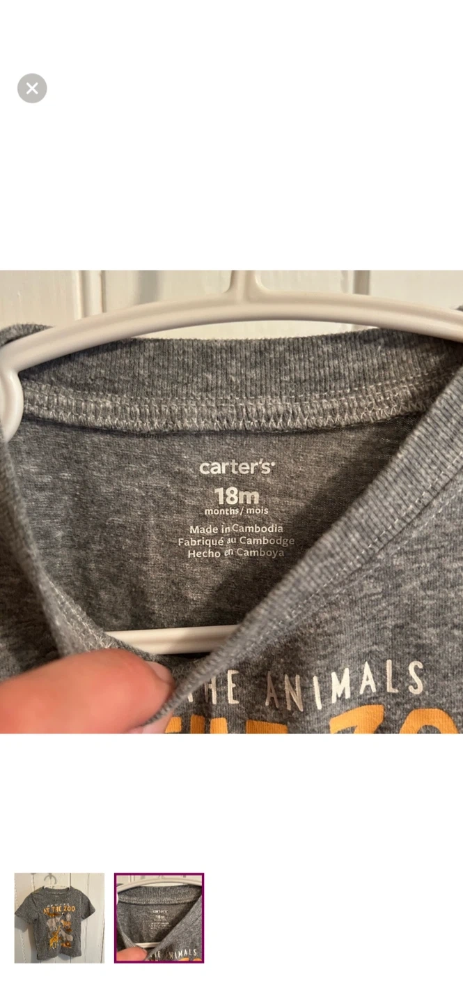 Carters brand. Short sleeve graphic T-shirt. Grey with zoo animal graphic. Size 18m. Brand new condition