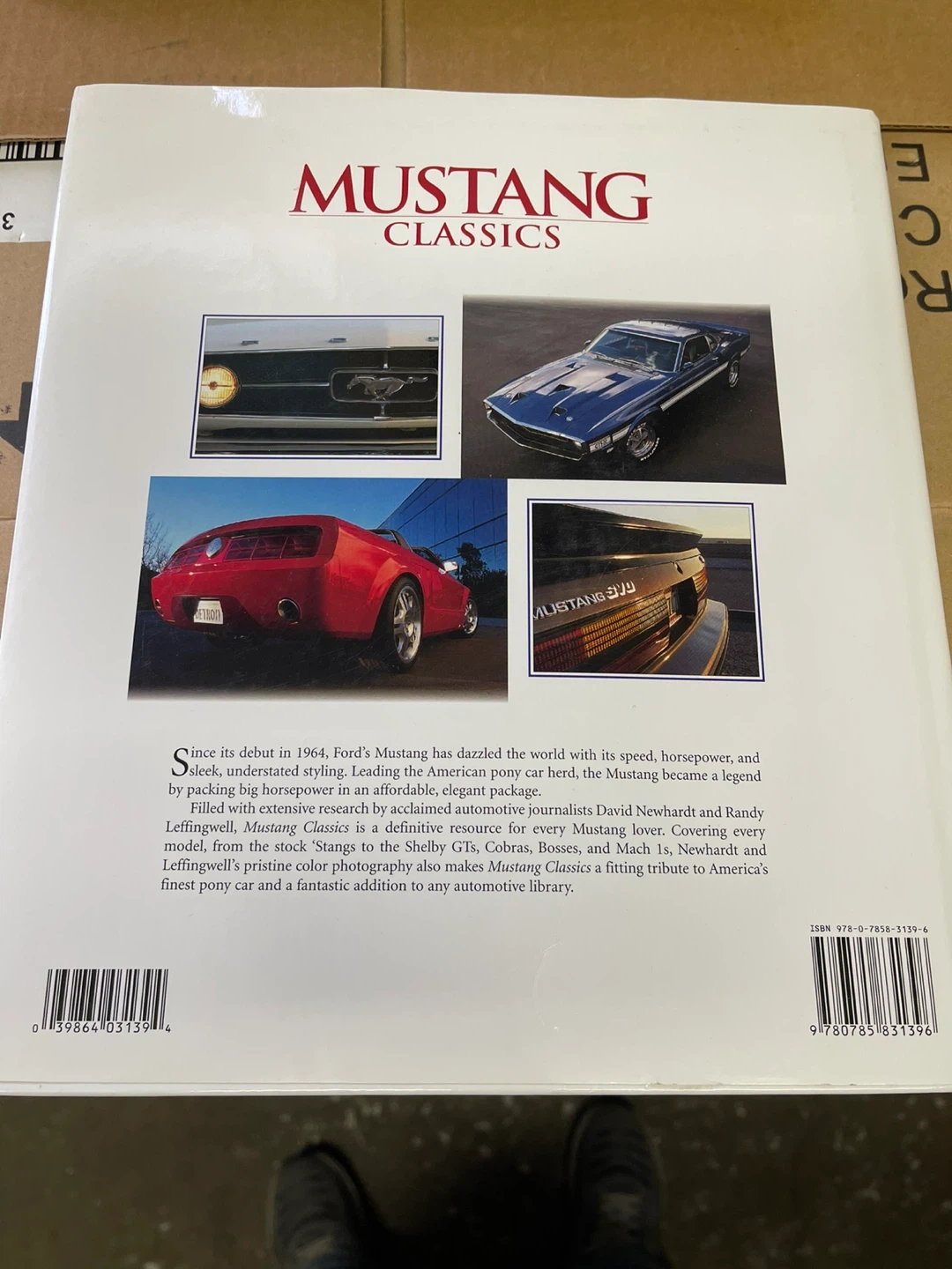 Selling a copy of 'Mustang Classics' by Randy Leffingwell. This book is filled with extensive research by acclaimed automotive journalists David Newhardt and Randy Leffingwell. It's a definitive resource for every Mustang lover, covering every model, from the stock Stamps to the Shelby GTs, Cobras, Bosses, and Mach 1s. Cash only