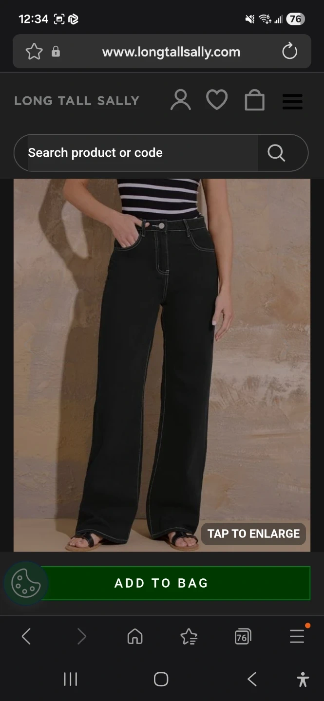 These are a pair of Long Tall Sally black wide leg jeans with contrast stitching! They are a US size 14 and have a 34" inside leg length. Perfect for adding a stylish touch to your wardrobe!