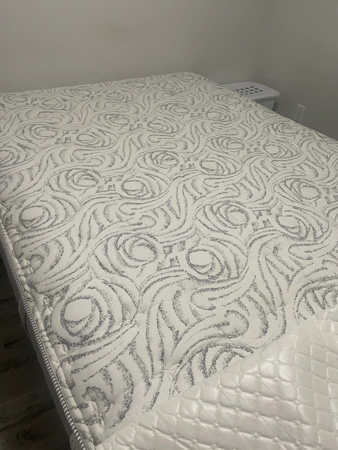 Selling a queen size mattress that's in great shape! It has a lovely patterned top and a quilted design on the sides. It's been gently used and well taken care of. Perfect for a comfy night's sleep!