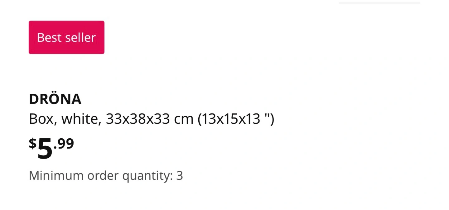 Buy & SellIKEA DRÖNA Box - 2 white and 4 blueIKEA DRÖNA Box - 2 white and 4 blue$10Three white IKEA DRÖNA box In clean and great condition, recently purchased 2 white for $7 4 blue for $24 Altogether for $30ConditionLike newWHERE TO MEET99 Broadway AveView MapSELLERverifiedMoonChurch and Wellesley15910 reviews2 chats·5 favorites·83 viewsSEND CHAT TO SELLERHi Moon! I’m interested in your listing.Hi Moon! I’m interested in your listing.Get the Karrot app to chatSign In to chat
