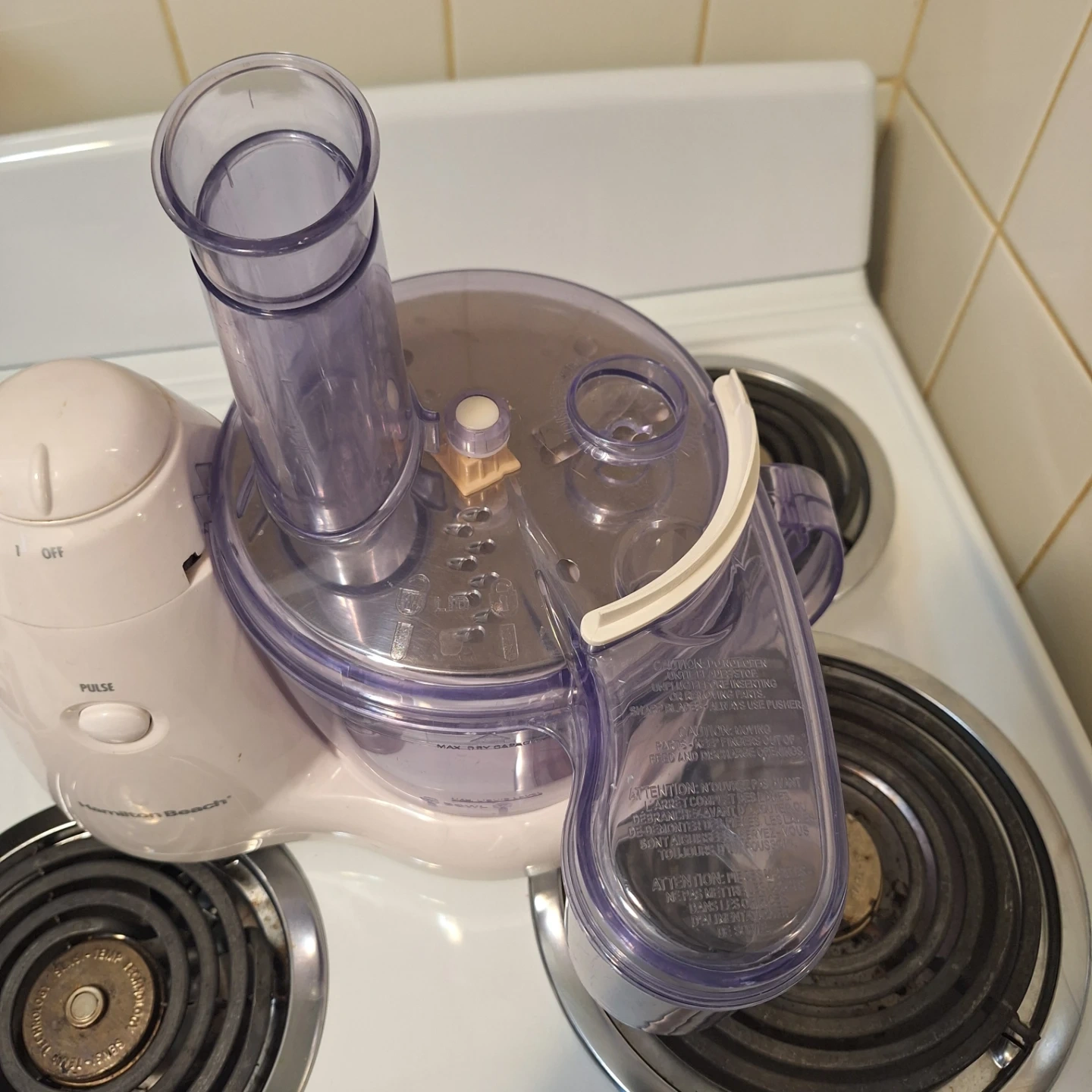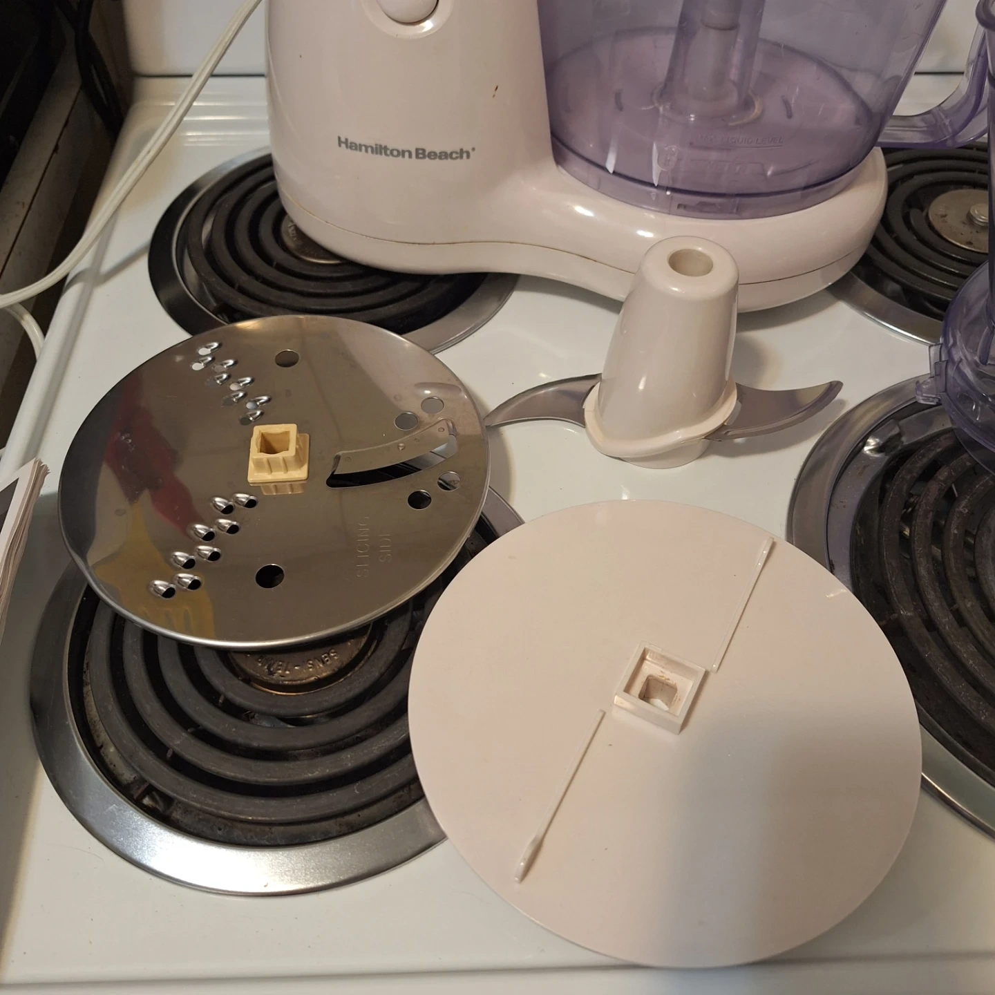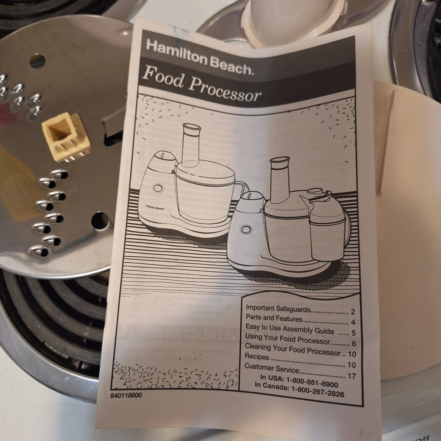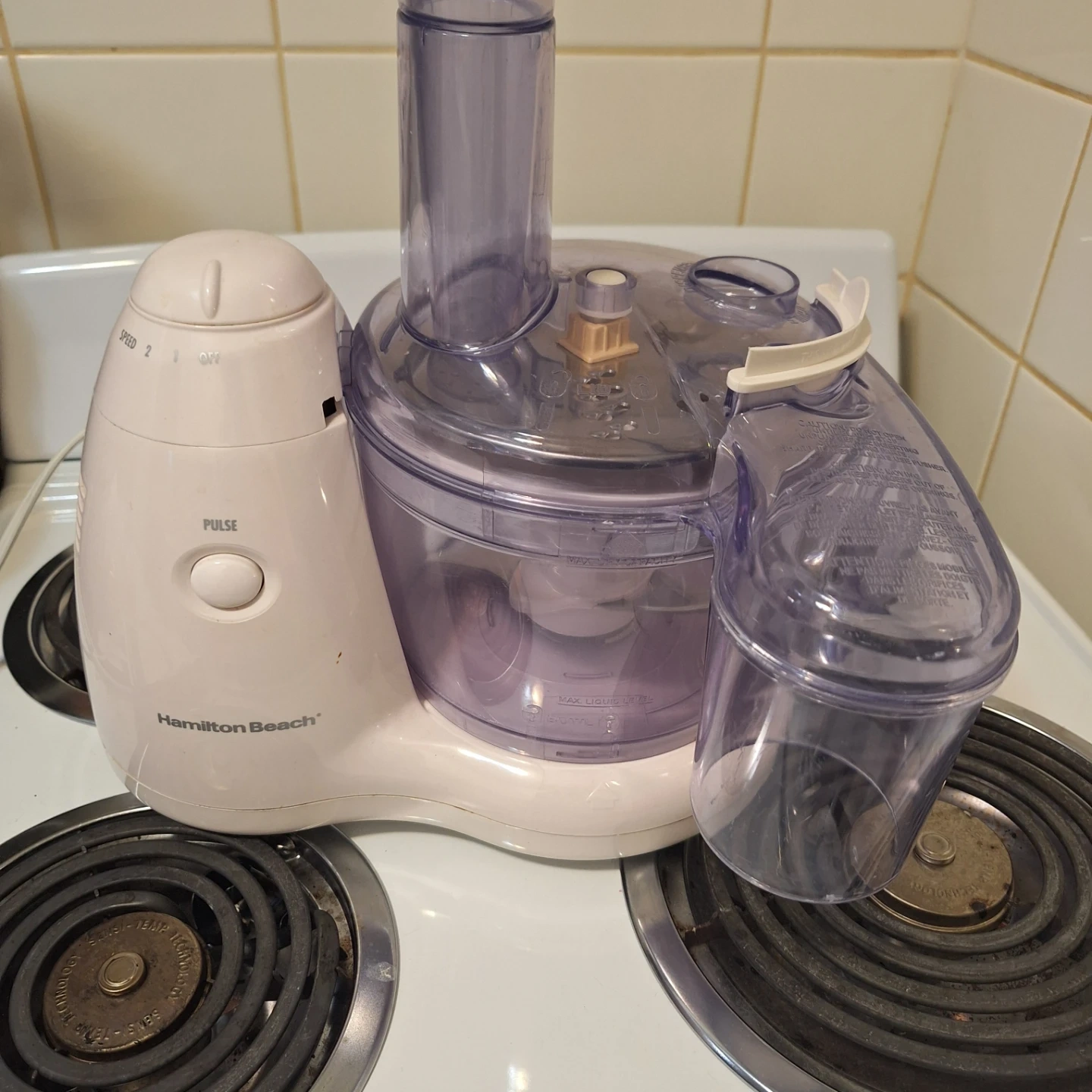 Selling a Hamilton Beach food processor. It comes with all the accessories shown in the pictures, including the blades and the pusher. It's in good working condition and ready to help with your food prep!