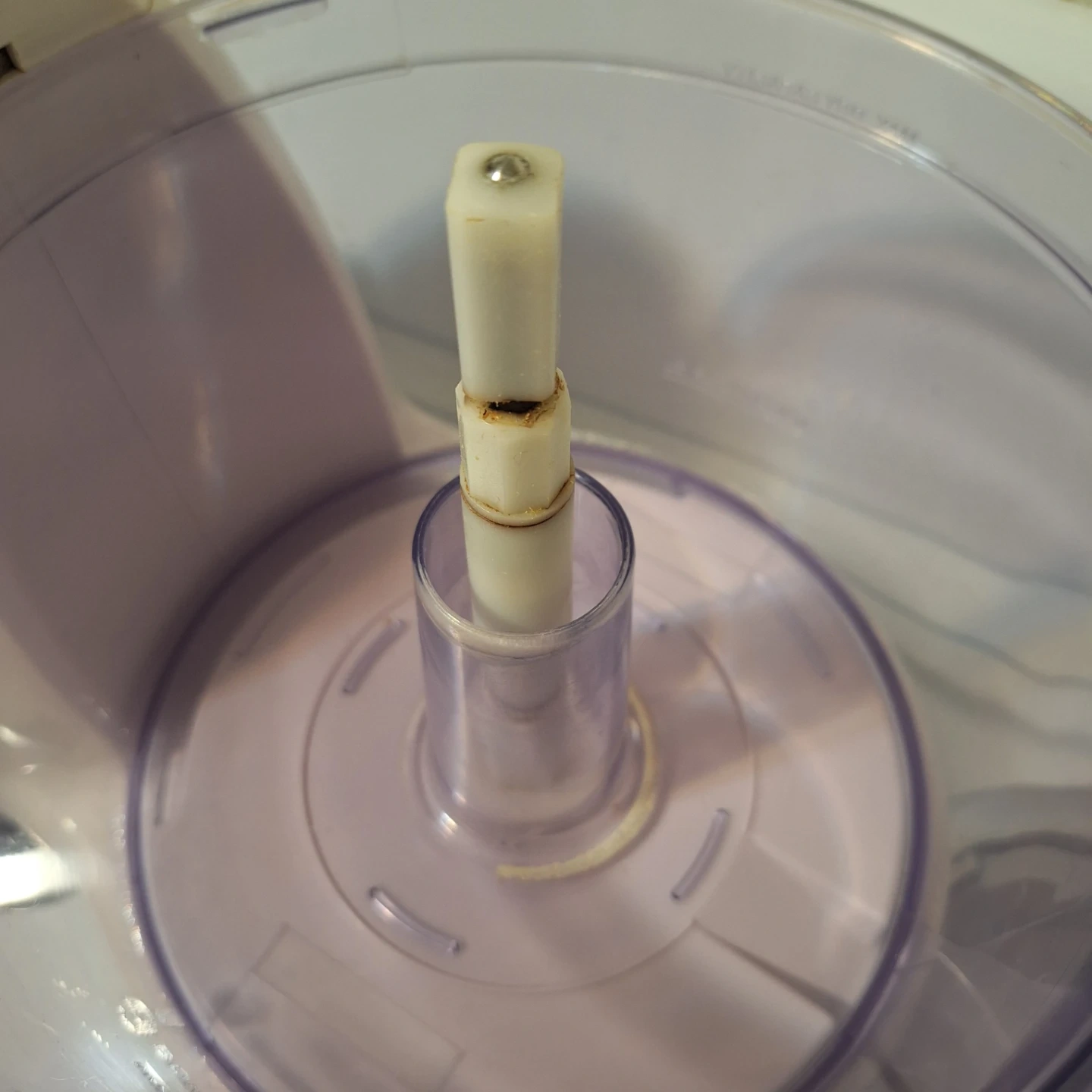 Little bit of wear around center pole as well as the base inside the container where the blade spins.