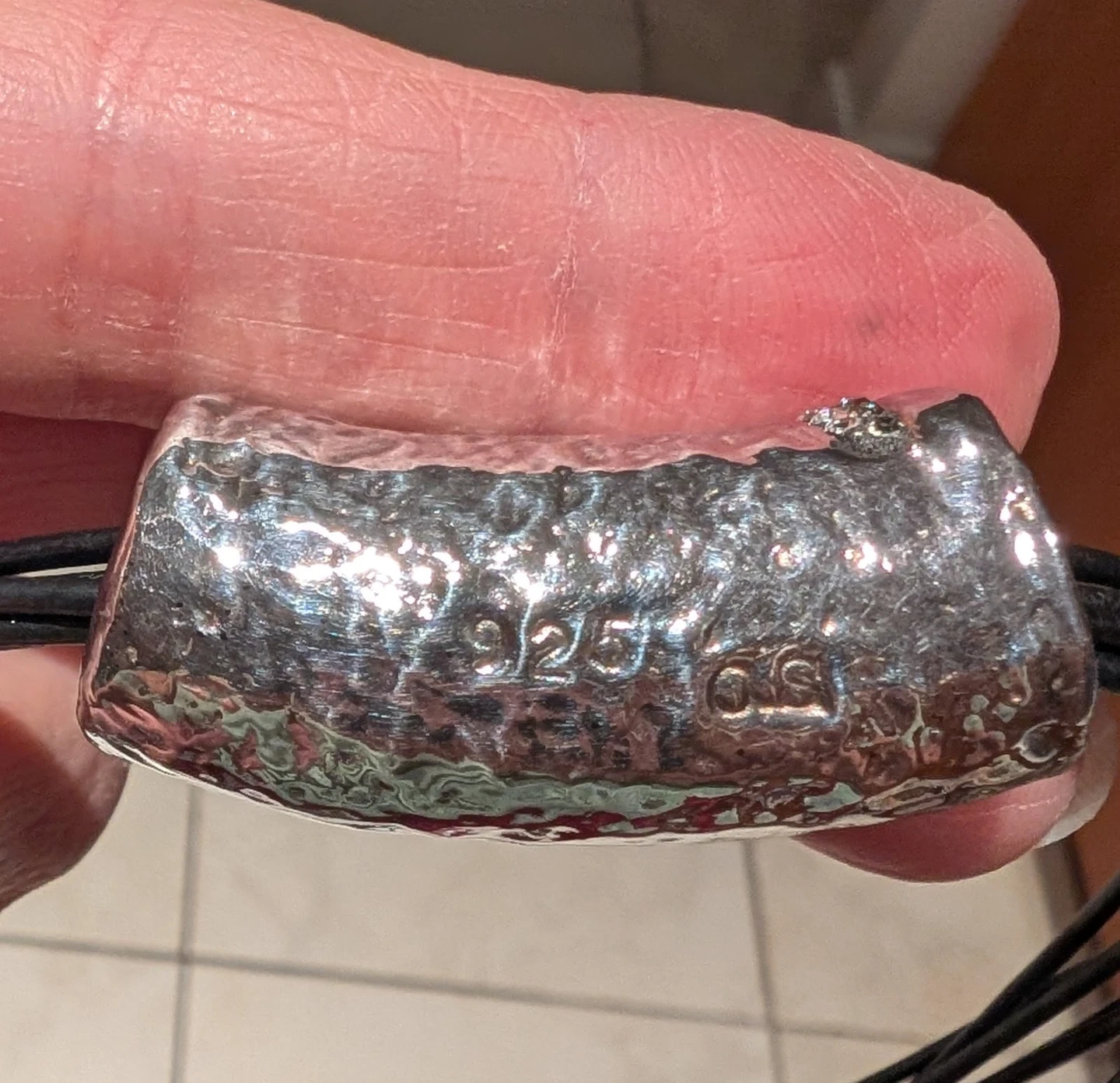 Selling a beautiful sterling silver choker necklace! It's marked with '925' indicating the silver purity. The necklace features a unique design with a decorative silver centerpiece and multiple black cords. Comes with its original box!