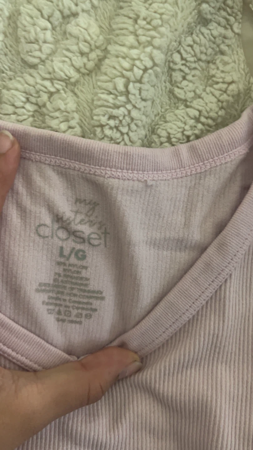 Selling a cute light pink ribbed top from My Sister's Closet! It's a size L/G in kids and made of 95% nylon and 5% spandex. It's in great condition was worn twice and ready for a new wardrobe!!
