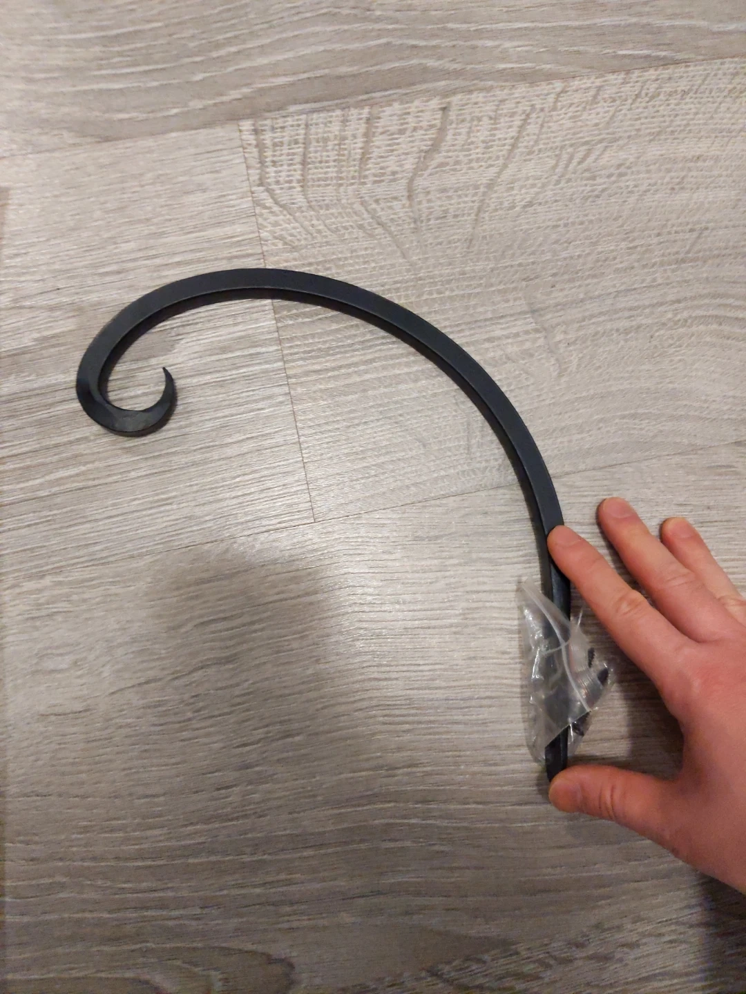 Here's a GrayBunny hand forged wall hook, model GB-6848! It's black and looks great for hanging bird feeders, plant baskets, wind chimes, and more. It's rust resistant, sturdy and lasting, and can be screwed into wooden fence posts, deck posts, or walls