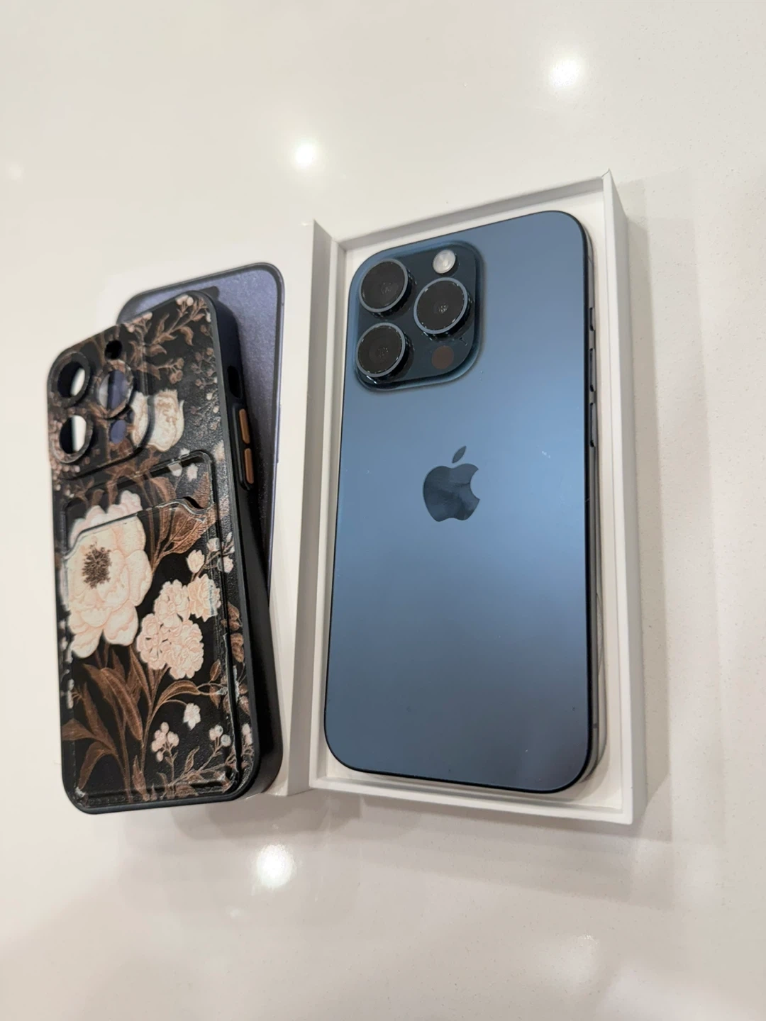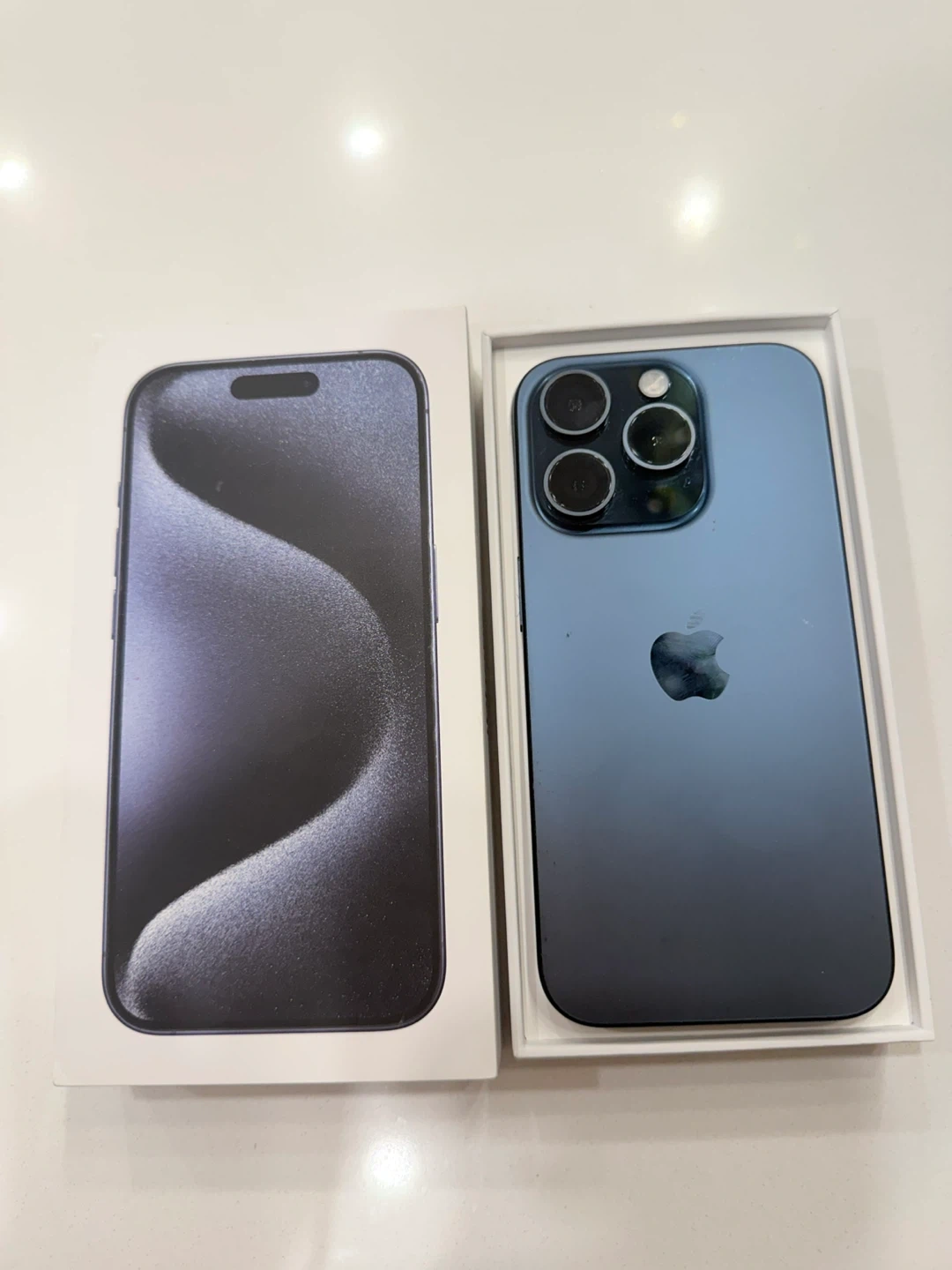 For sale is my iPhone 15 Pro in stunning Blue Titanium, with a pristine condition that's almost new! The phone has been well-cared for, and I'm including a few extras to sweeten the deal.