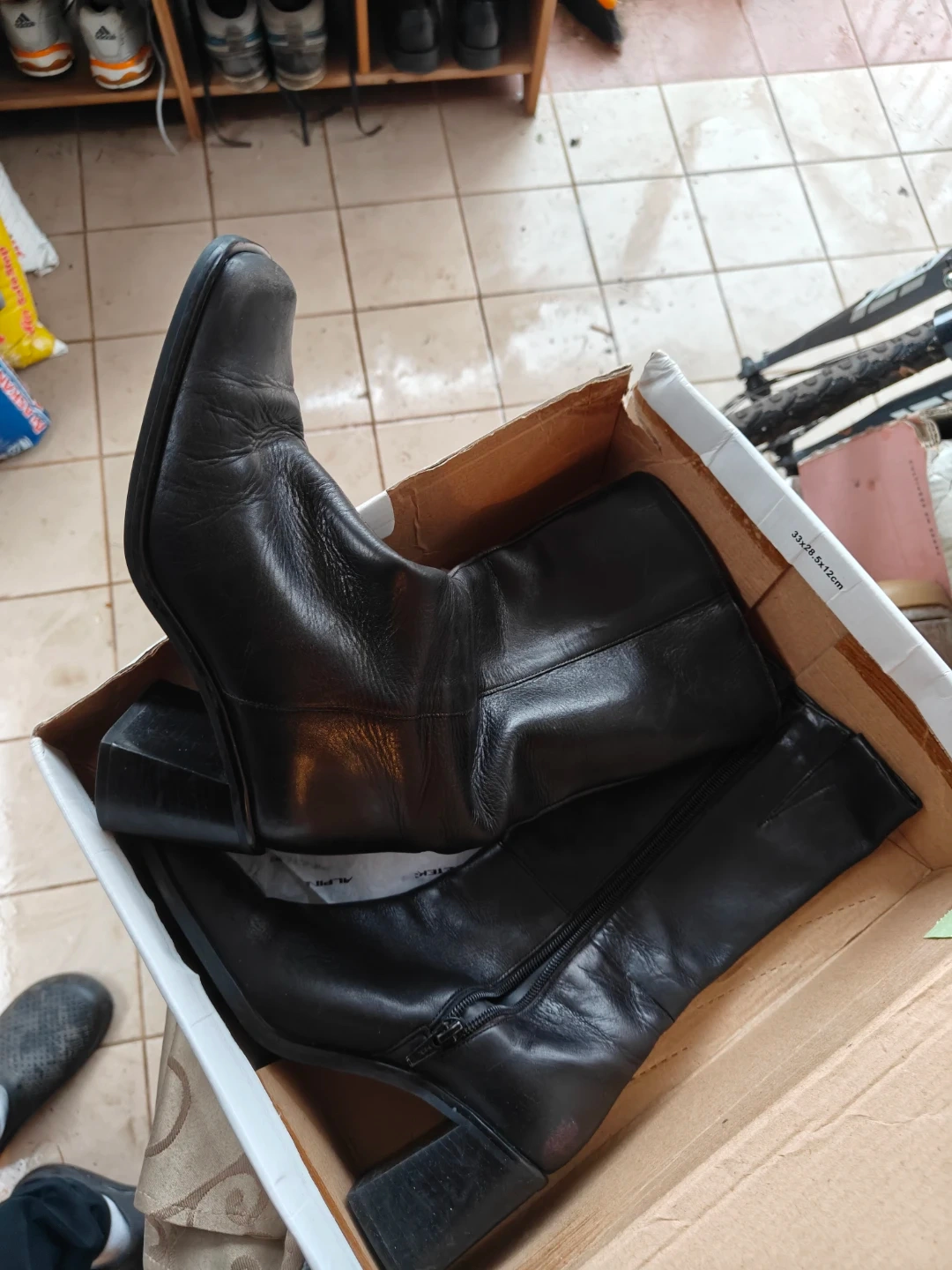 Selling a pair of Esprit black leather heeled boots in size 7. They show some signs of wear, but are still in good condition and come with the original box!
