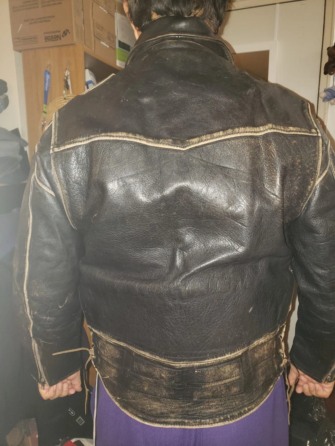 Selling a CROG original leather jacket in size L. It has a unique style and a comfortable fit. It's made of leather and is in good condition.