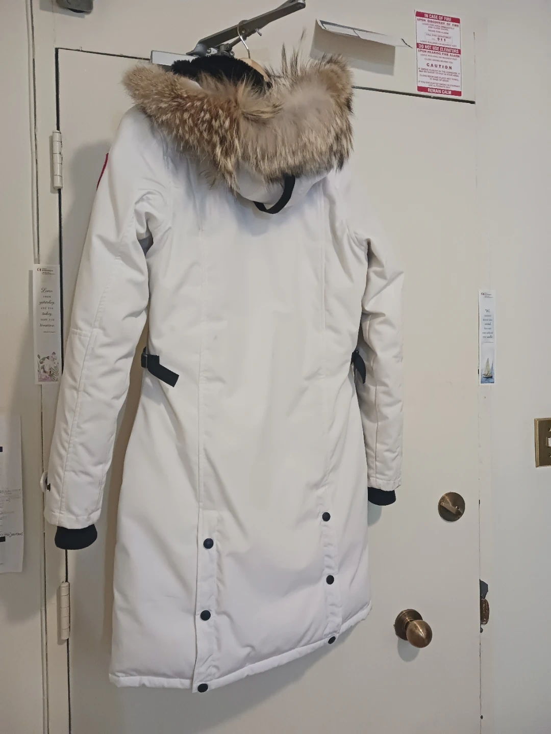 Selling a Canada Goose coat in white, size M/M. It's in great condition and ready to keep you warm this winter!