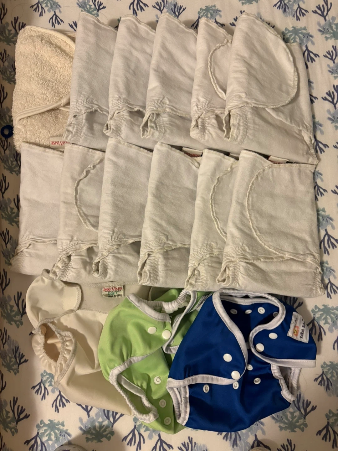 I'm selling a set of Imse Vimse diapers. They are XLarge size, suitable for 11-14kg babies. Made from 100% organic cotton.