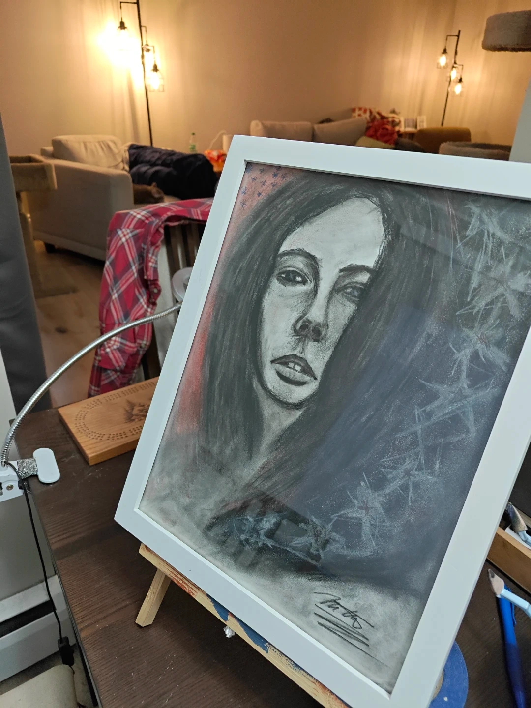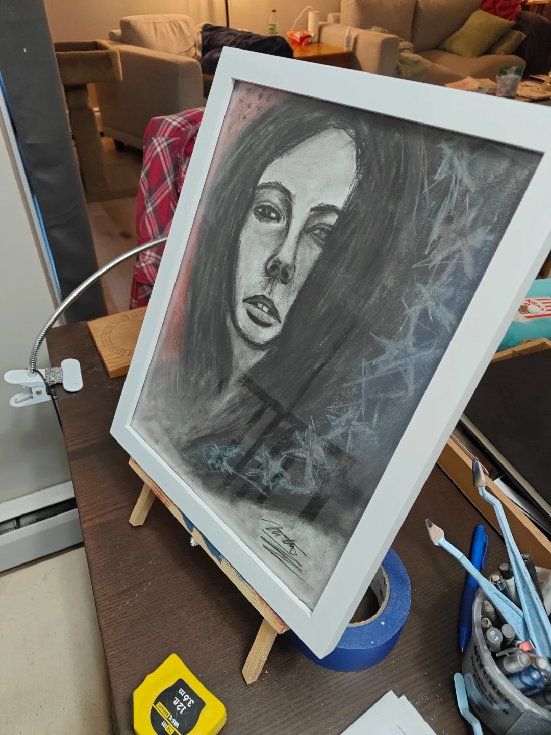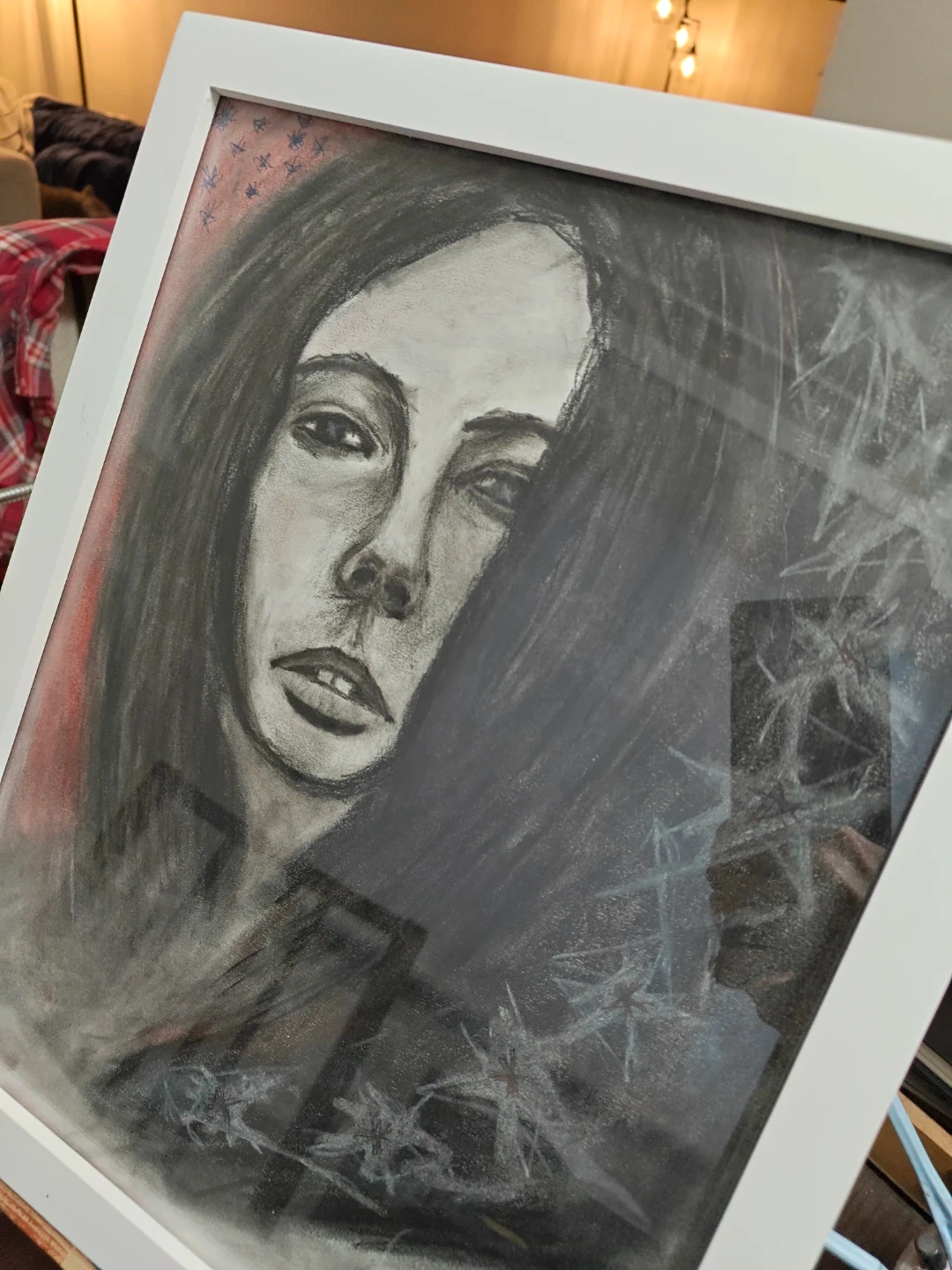Expressionist portrait art with dark/gothic and mixed-media influences.