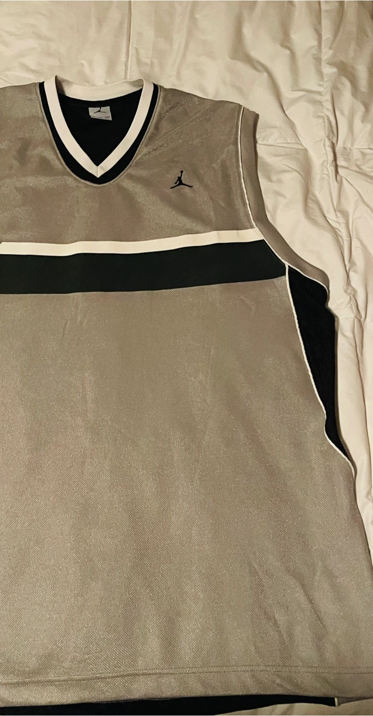 Selling a Jordan basketball jersey with #23 on the back. It’s black with silver accents and perfect for playing ball, hanging out, or adding some style to your fit.