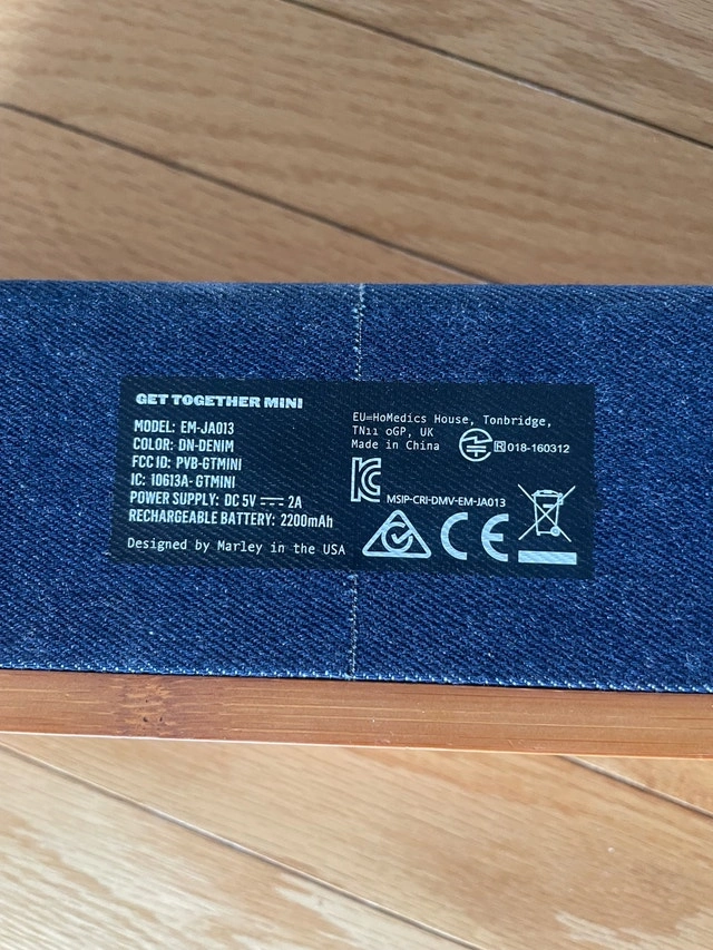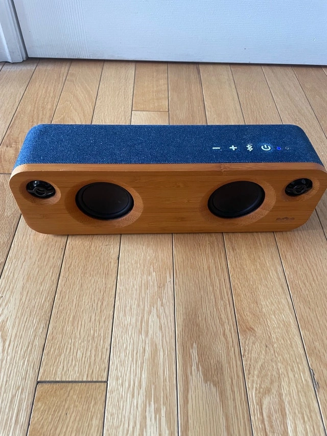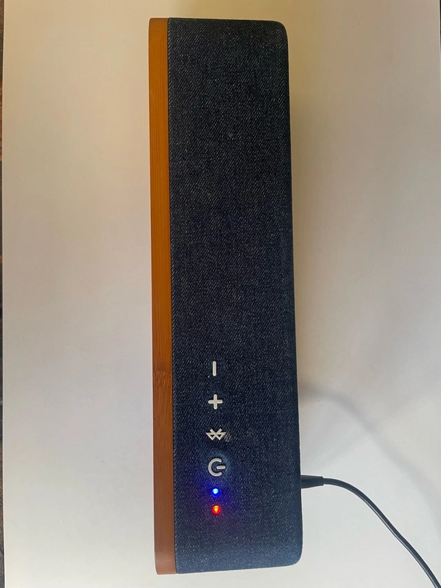Marley Get Together Mini Bluetooth speaker. This speaker features a stylish design with a denim exterior and bamboo trim. It has Bluetooth connectivity for wireless streaming and delivers rich, clear sound. Key features: - Bluetooth connectivity - Stylish denim and bamboo design Pickup can be arranged in Brampton, Mississauga, Oakville, Burlington, Hamilton