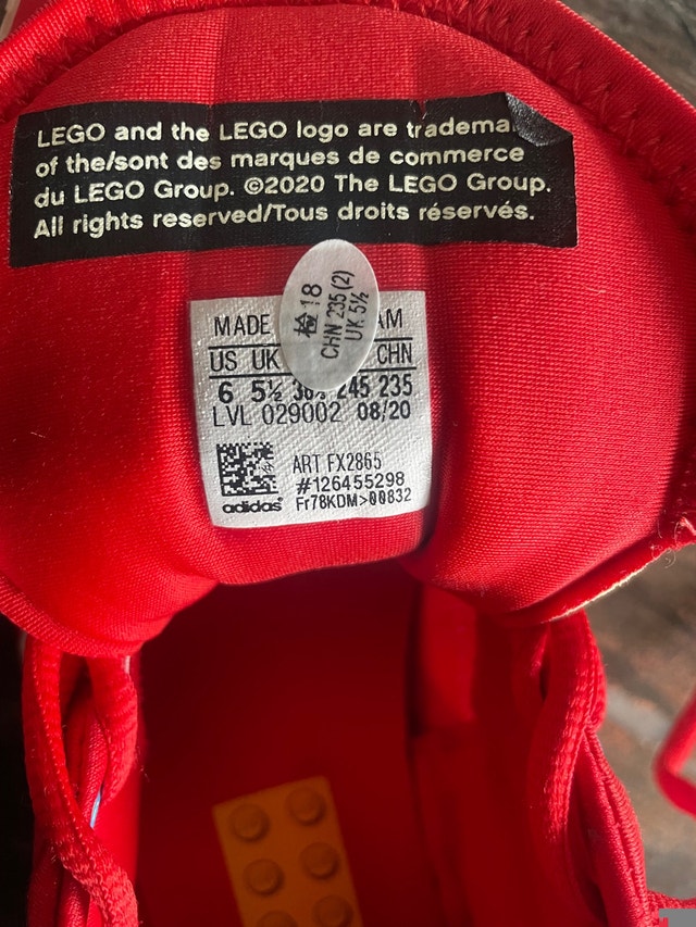Adidas Lego sneakers size 6 Ladies women’s girls boys unisex size 6 Adidas Lego collaboration sneakers Red adiddas colour