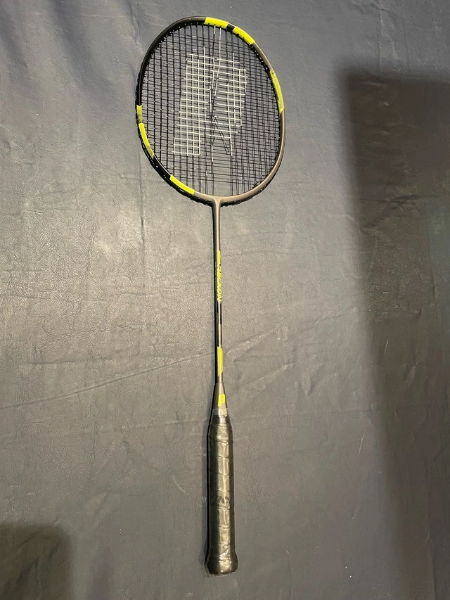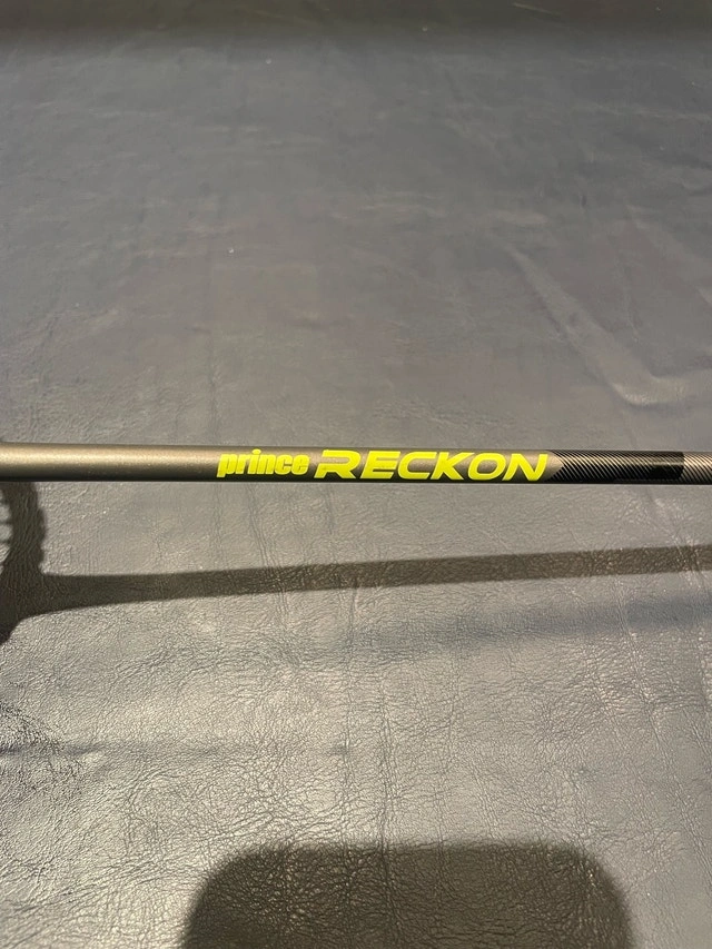 Prince Reckon badminton racquet. Please note that the strings need to be replaced. This racquet features a head light design and a slim shaft for enhanced play. Here are some additional details: * Brand: Prince * Model: Reckon * Head Light * Slim Shaft New sells for $119+ tax Crafted entirely from graphite, this racquet guarantees agility and power in every shot. Its slim 6.5mm shaft ensures unparalleled control. Elevate your game with the Prince Reckon and experience the perfect fusion of style and performance. Pickup can be arranged in Brampton, Mississauga, Oakville, Burlington, Hamilton
