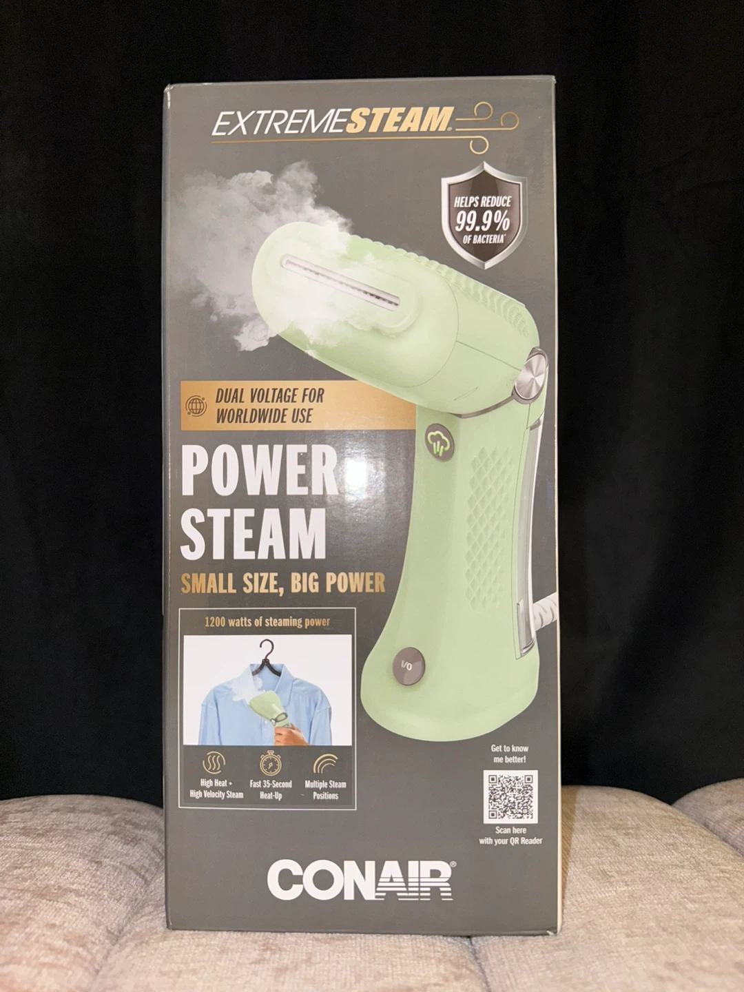 I'm selling a Conair Extreme Steam Power Steam handheld steamer! It's mint green and brand new in box.