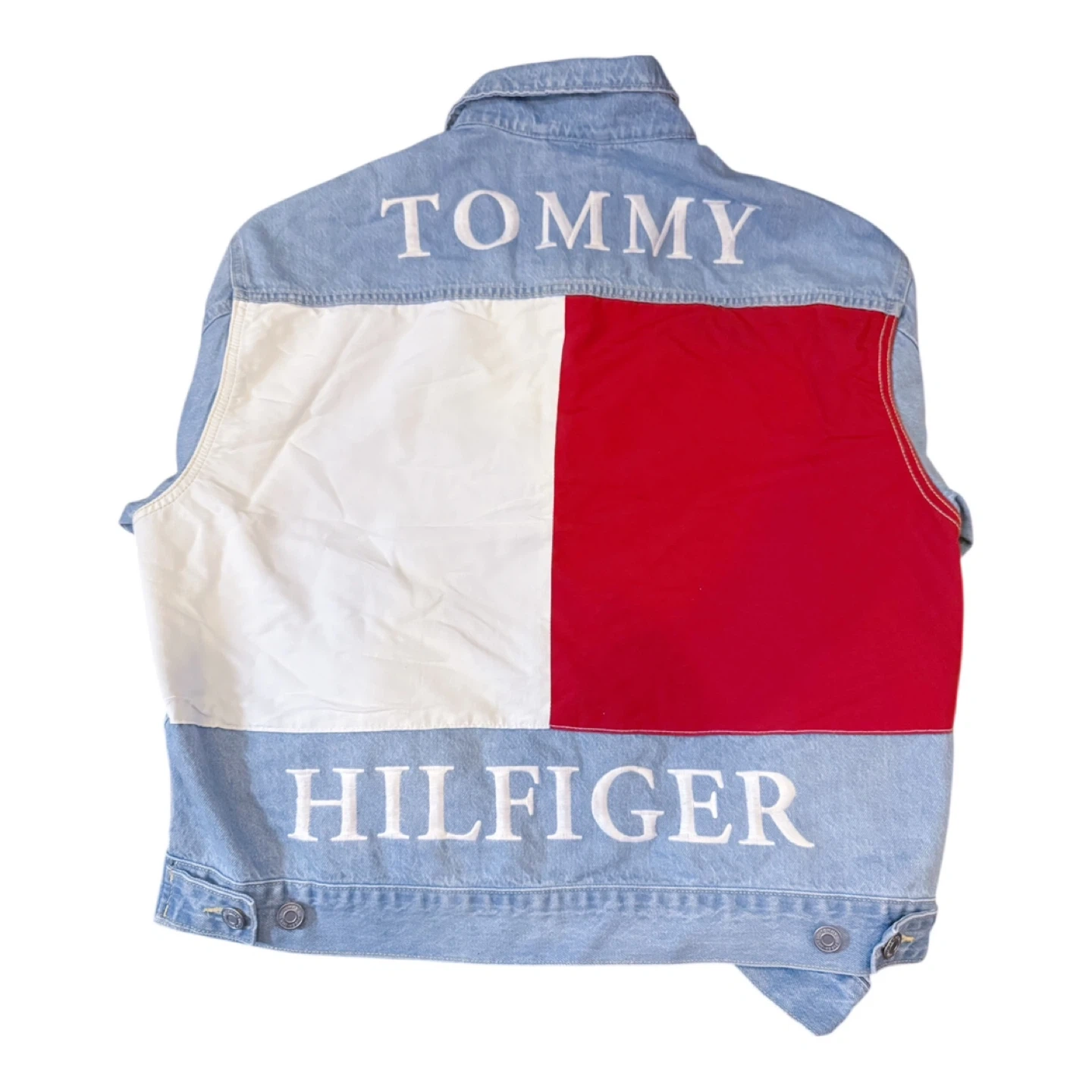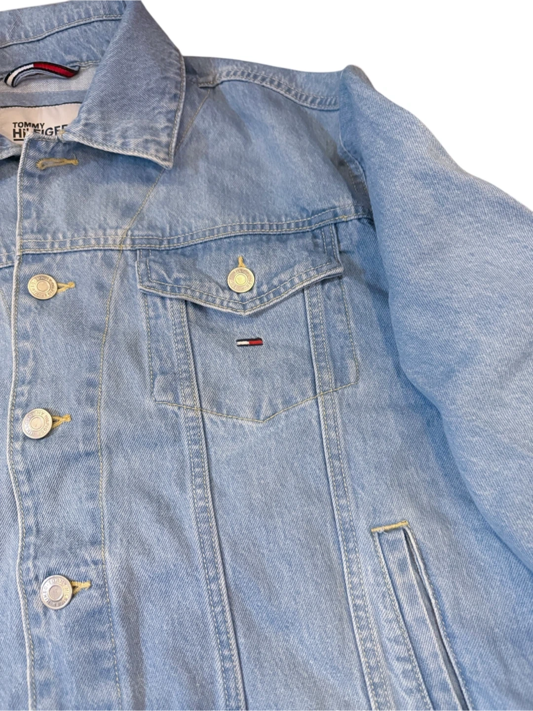 TOMMY HILFIGER UNISEX OVERSIZED DENIM JACKET ARCHIVE FLAG SZ L