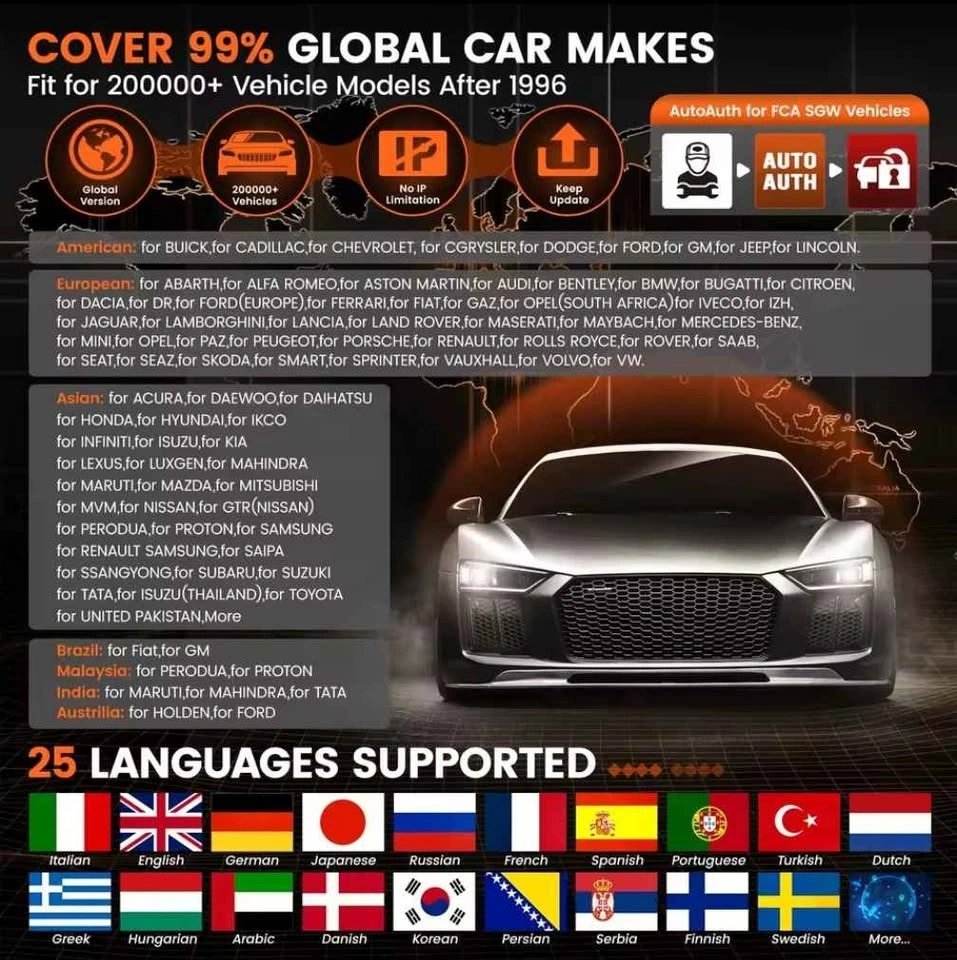Component Matching: Compatible with Volkswagen Skoda / Seat / BMWN/ GM/ Ford / Opel Mazda Fiat / Honda / Nissan / Hyundai / Kia / Subaru etc. Online Coding: Compatible with Volkswagen / Audi Benz / BMW/ Seat / Porsche etc.