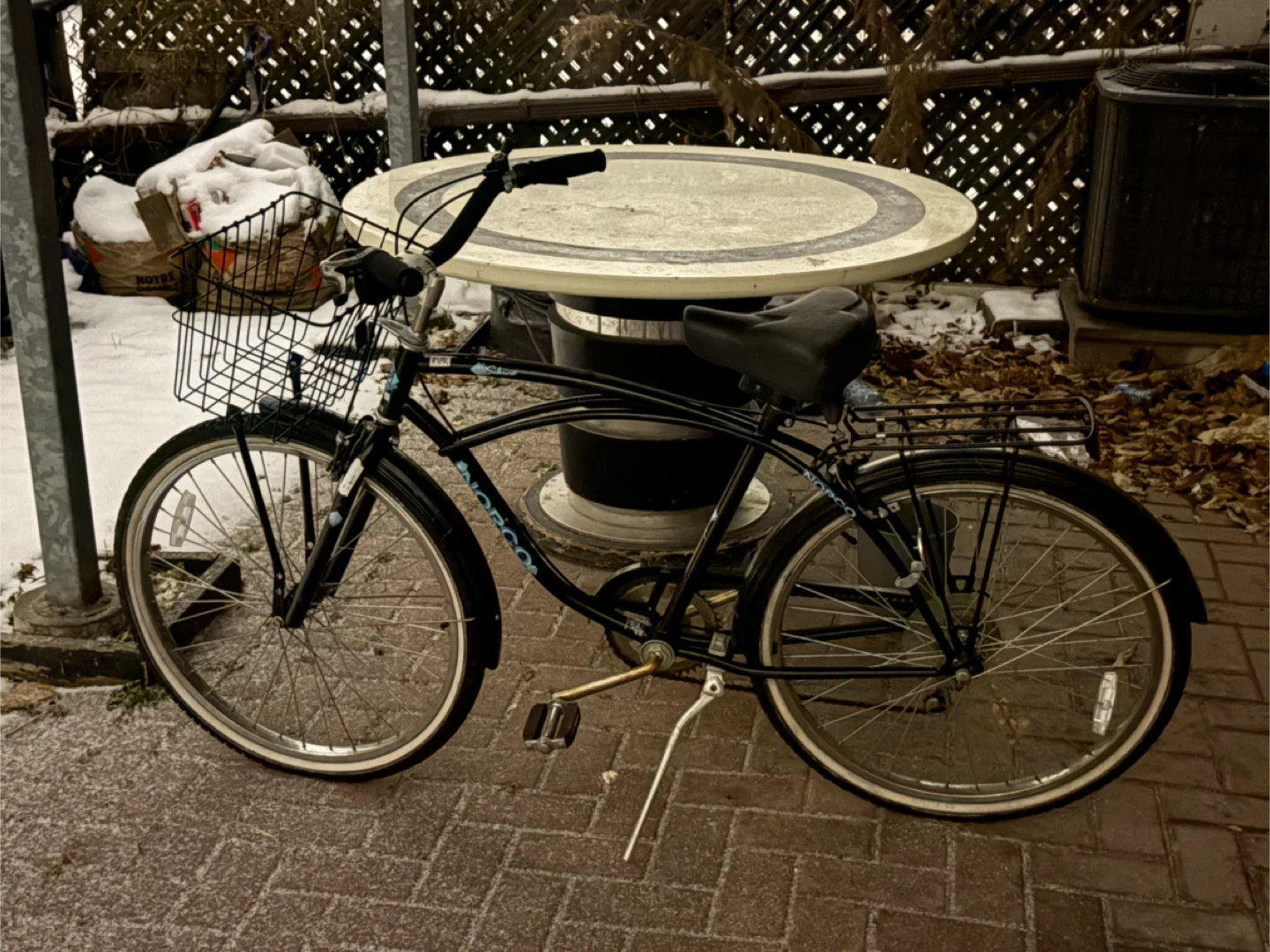 Selling a Norco cruiser bike in black. It features a basket in the front, perfect for carrying your essentials while you ride around town. It's a comfortable and stylish way to get around!