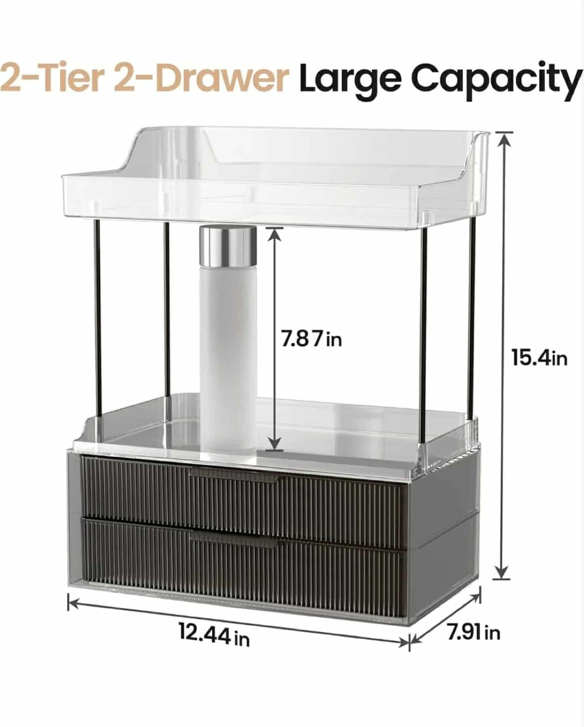 2-Tier 2-Drawer Makeup Skincare Organizer - Elegant Black