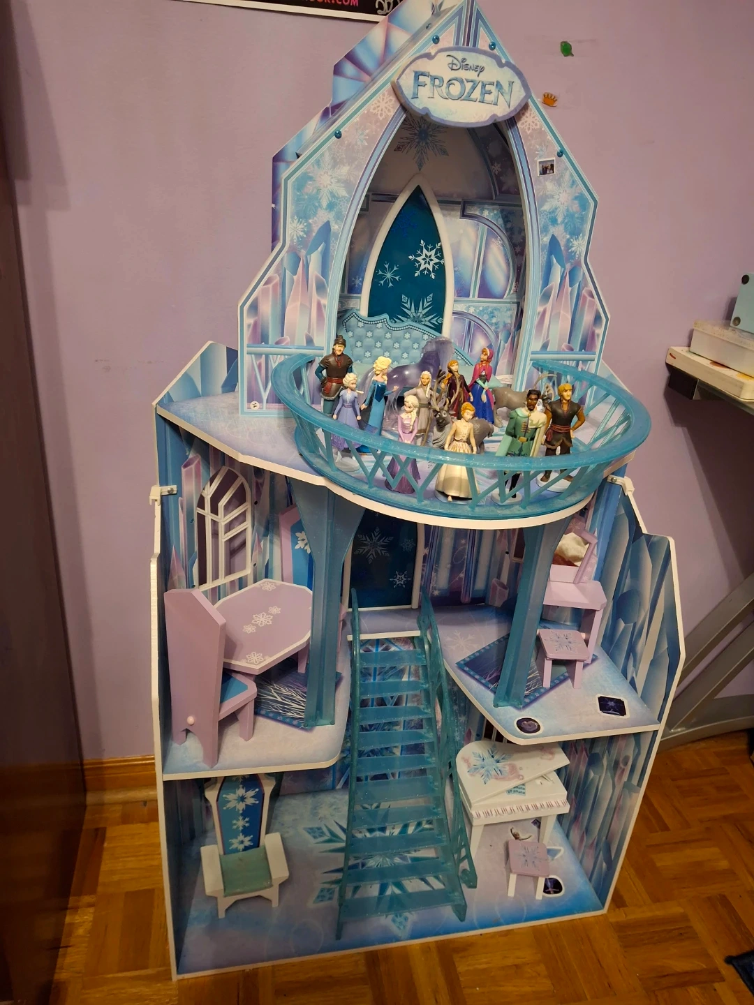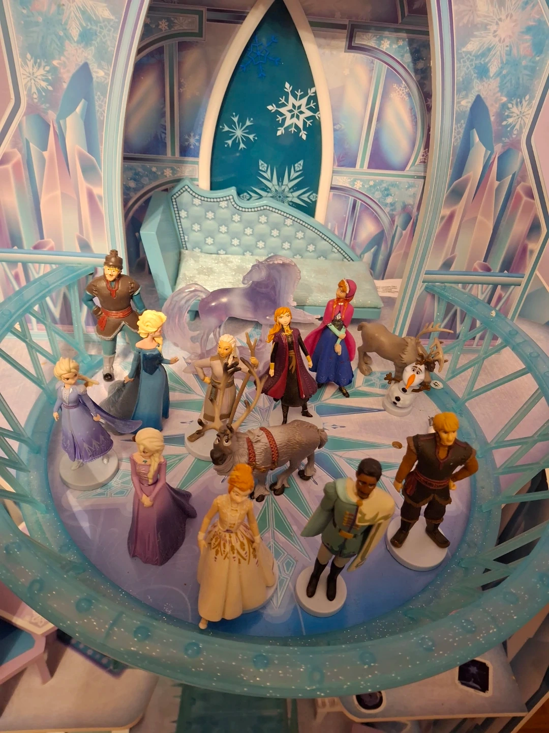 Selling a Disney Frozen Arendelle Castle playset! It's in great condition and comes with 15 figurines. It includes furniture like a dining table, chairs, a piano, and a vanity. Perfect for any Frozen fan!