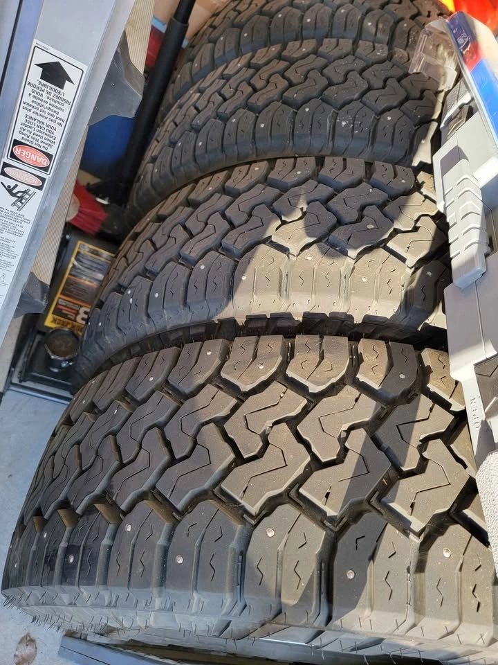 Nearly Brand new winter tires. (Still have the new tire nibs on them) 275/65R18 10ply. I sold my old truck and bought a new one and it has 20" tires. The are already mounted on O.E.M. Ford factory aluminum rims. (Fitment 2012 to present with 6-bolt pattern)