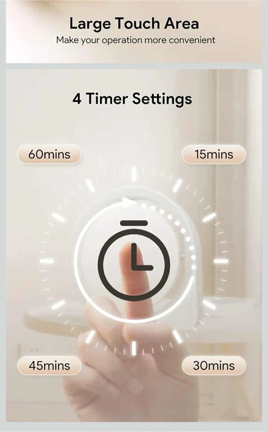 - 4 timer settings (15, 30, 45, 60 minutes)