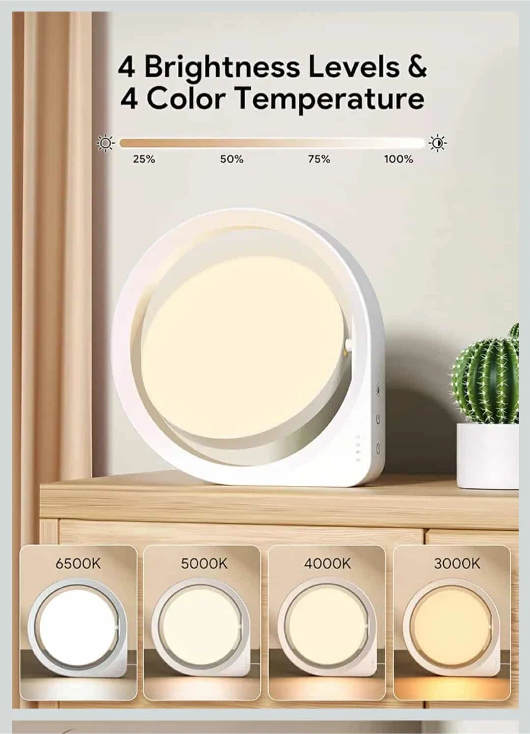 - 4 brightness levels and 4 colour temperatures