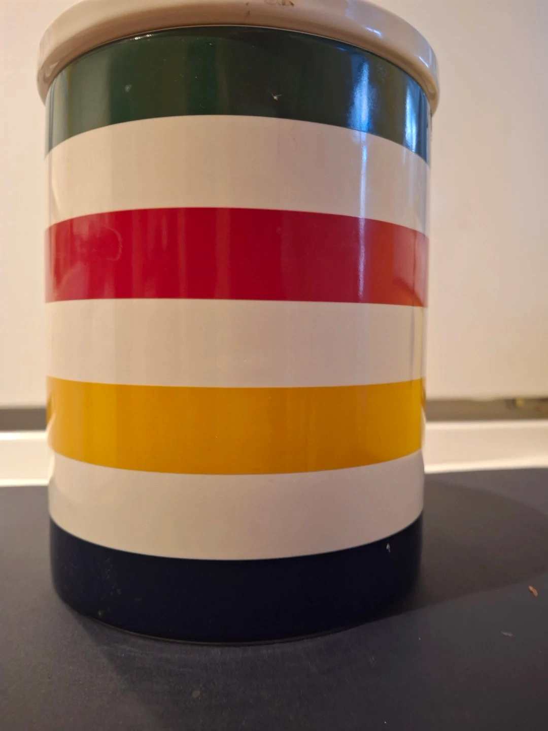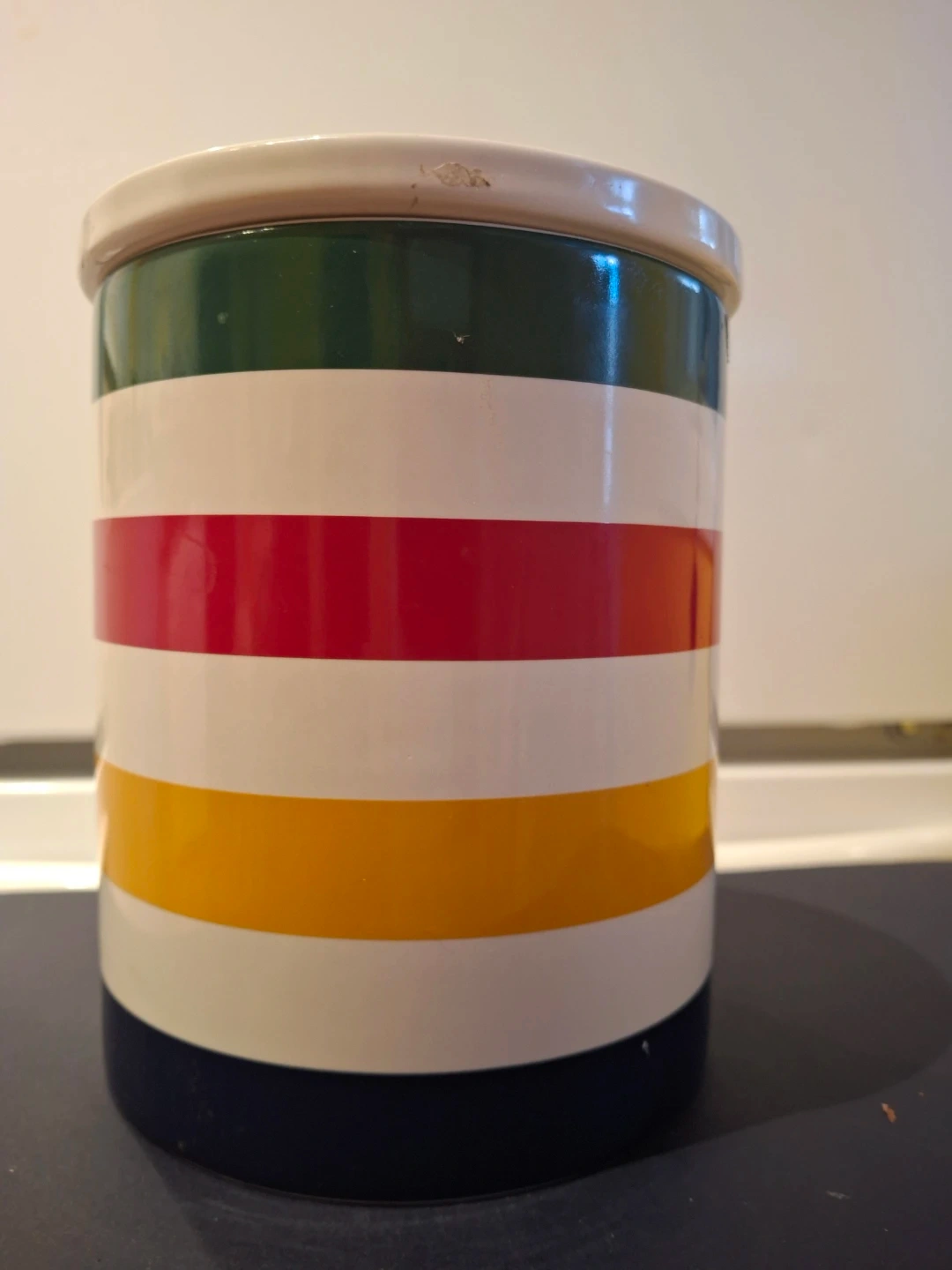 Selling a lovely HBC Stripes storage canister! It's in great shape and features the iconic Hudson's Bay Company stripes. Perfect for adding a touch of Canadiana to your kitchen or pantry