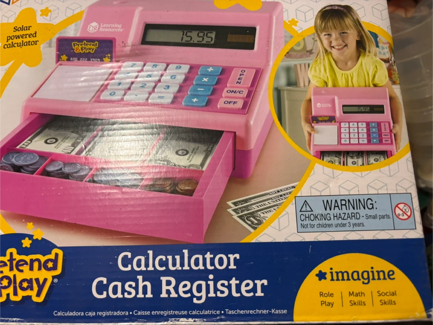I'm selling a Learning Resources Pretend & Play Calculator Cash Register! It's pink and includes a solar-powered calculator. It's great for kids ages 3+. It encourages role play, math, and social skills. Originally bought for $47.99!