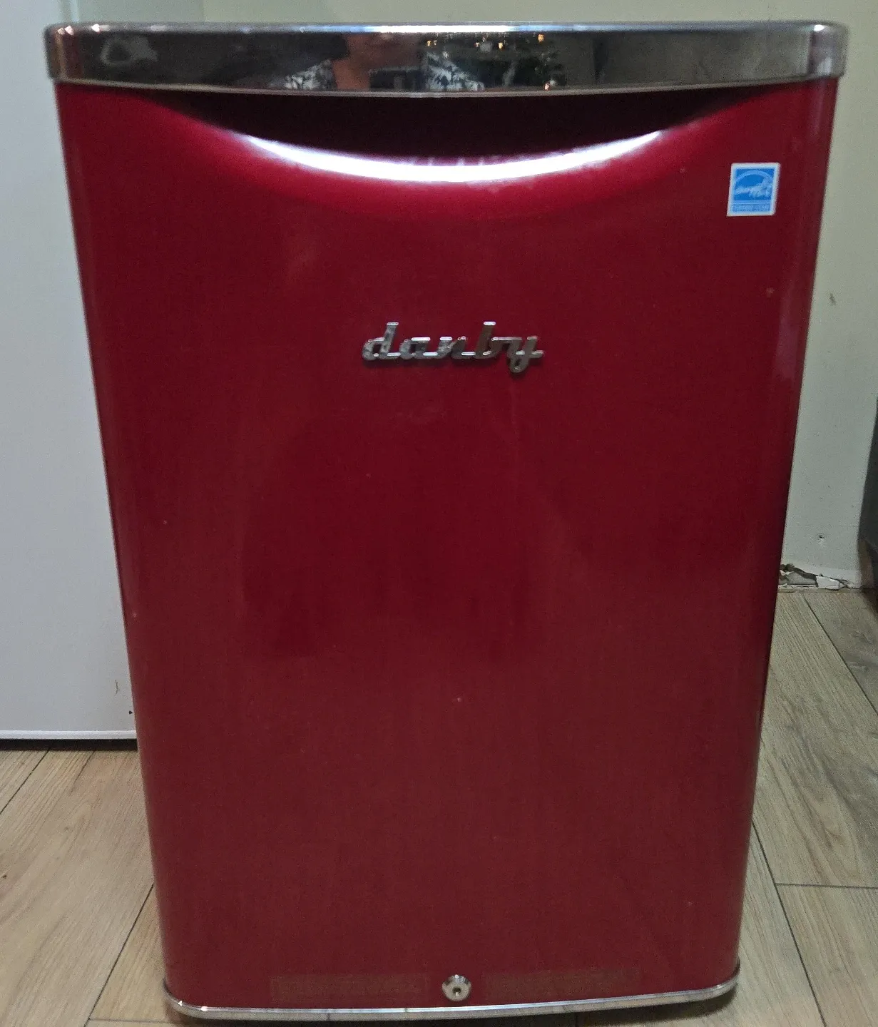Selling a Danby Designer compact refrigerator in red. It's in good condition and ready to keep your drinks and snacks cold! Perfect for a dorm room, office, or small apartments