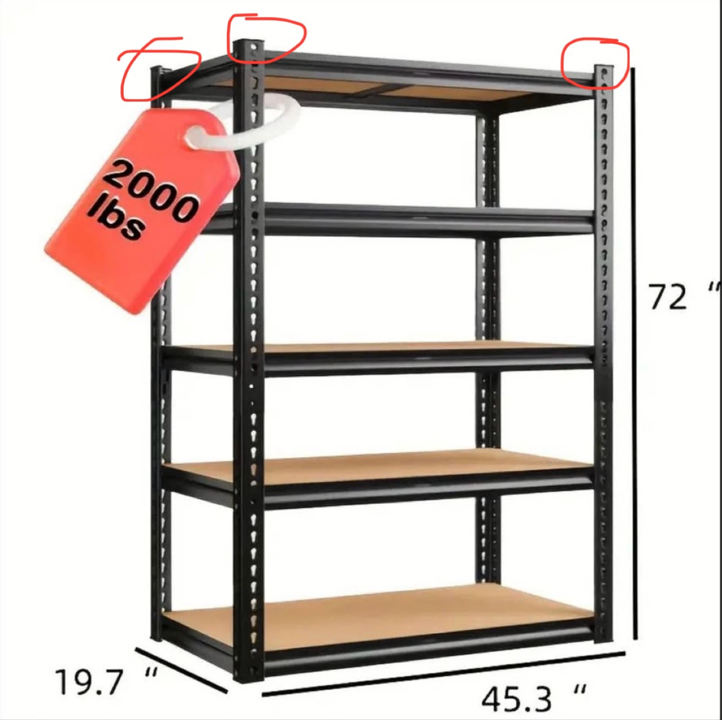 2000 lb, 72-inch, 5-T heavy-duty adjustable garage storage rack